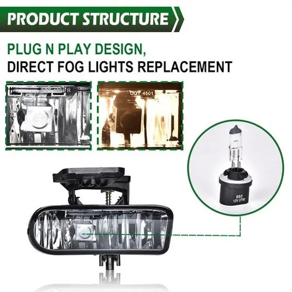 Bumper Fog Lights Driving Lamps Smoke Fit For 1999-2002 GMC Sierra 00-06 Yukon