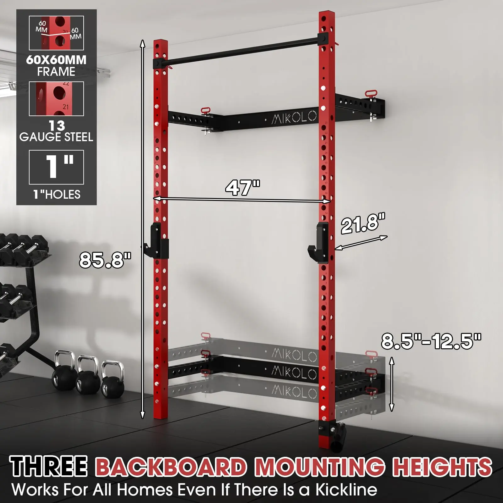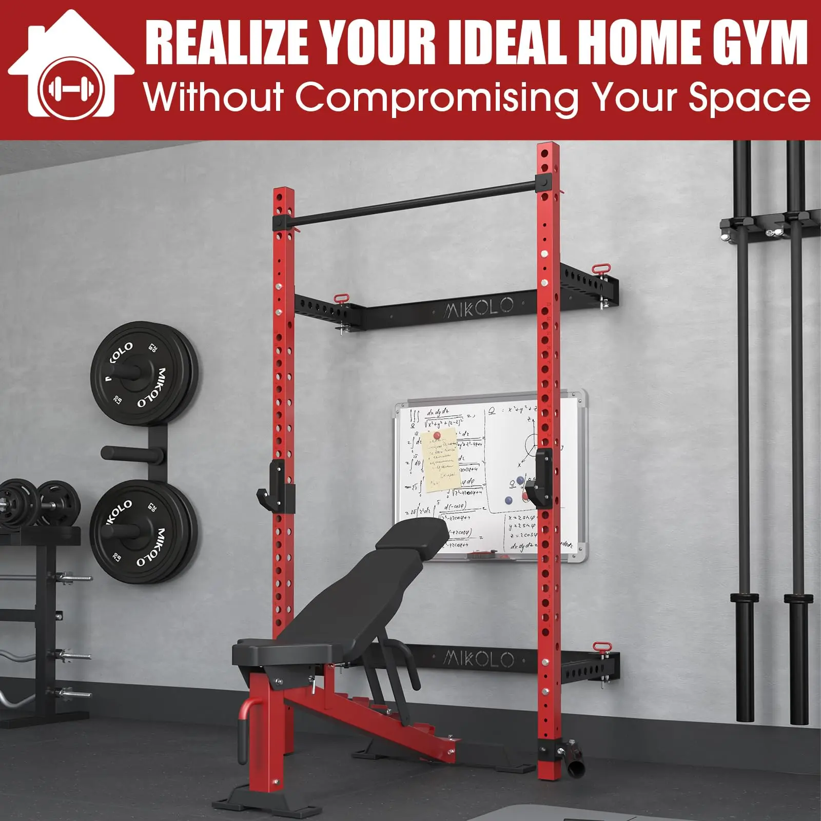 ·【Space-Saving Foldable Design】: Transform any empty wall into a fully-equipped training haven with our folding squat rack featuring a pulley system. When open, it measures 19.7" wide, taking up just a third of the space compared to a traditional squat rack. In just 15 seconds, switch seamlessly between storage and workout mode. When folded, it virtually disappears, leaving your space clutter-free!