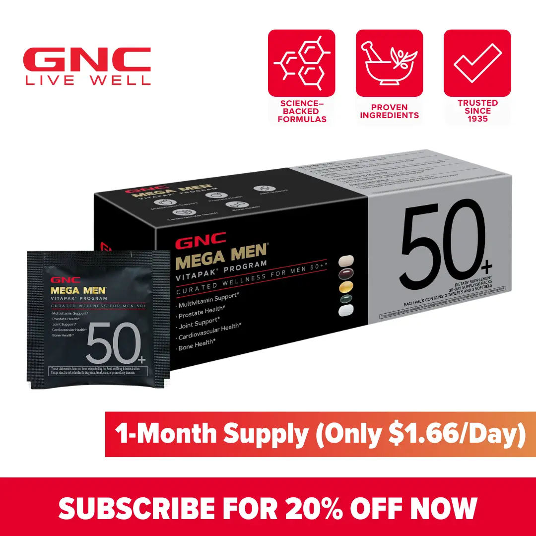 5. GNC Mega Men 50+ Vitapak, 5-in-1 Multivitamin Pack, Energy Production, Men's Health, Prostate, Joints, Edible Dietary Supplement, 30 Servings, Spring Glow Up