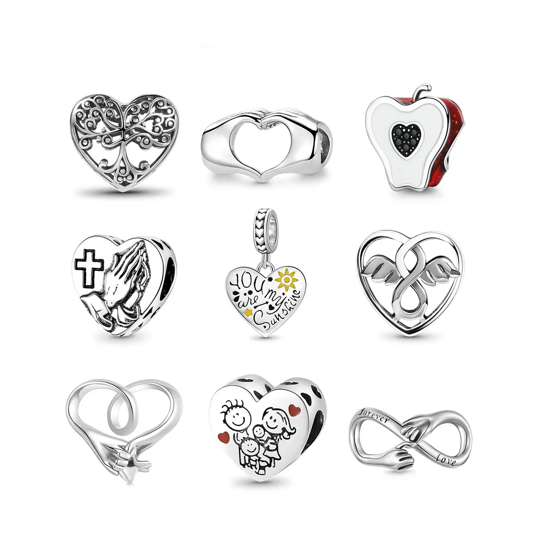 GNOCE Charm Bead for Bracelets - Cubic Zirconia and Enamel, Loving Heart and Infinity Sign Bracelet and Necklace Charms for Women and Girls, Finger Heart Beads Fit Snake Bracelets and Necklaces
