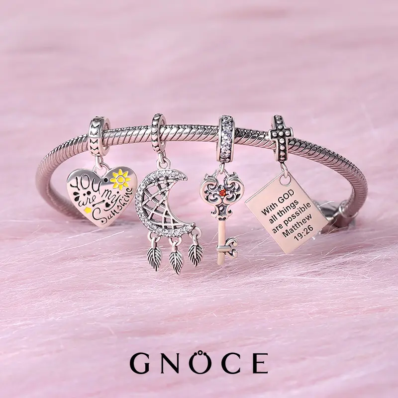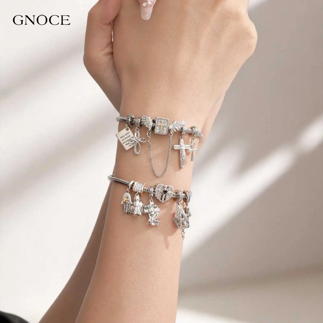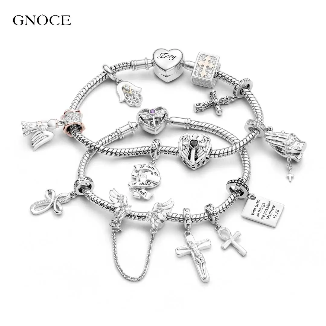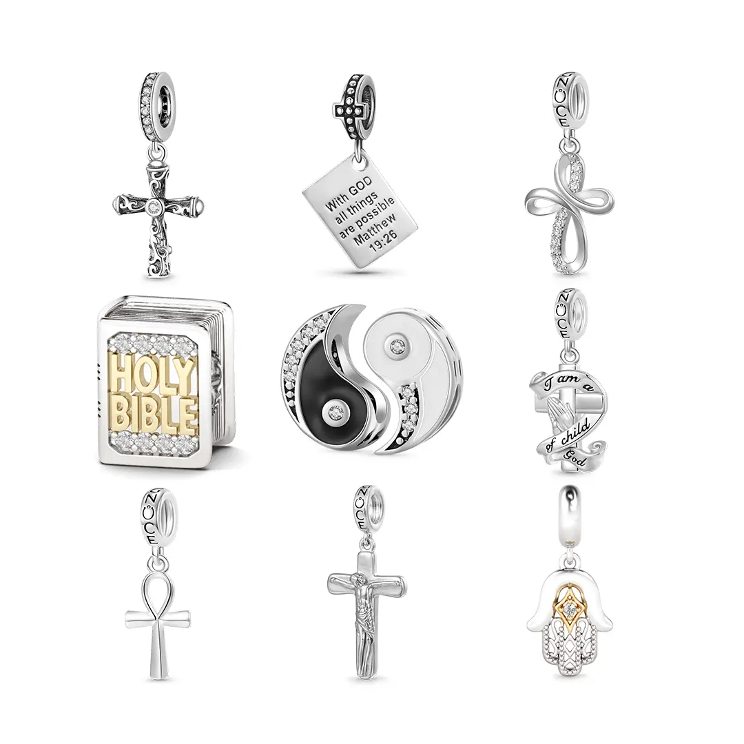 GNOCE Charm Bead for Bracelets - Cubic Zirconia and Enamel, Cross Bible and Tai-Chi Charm Bracelet and Necklace Pendant Charms for Women and Girls, Religion Beads Fit Snake Bracelets and Necklaces