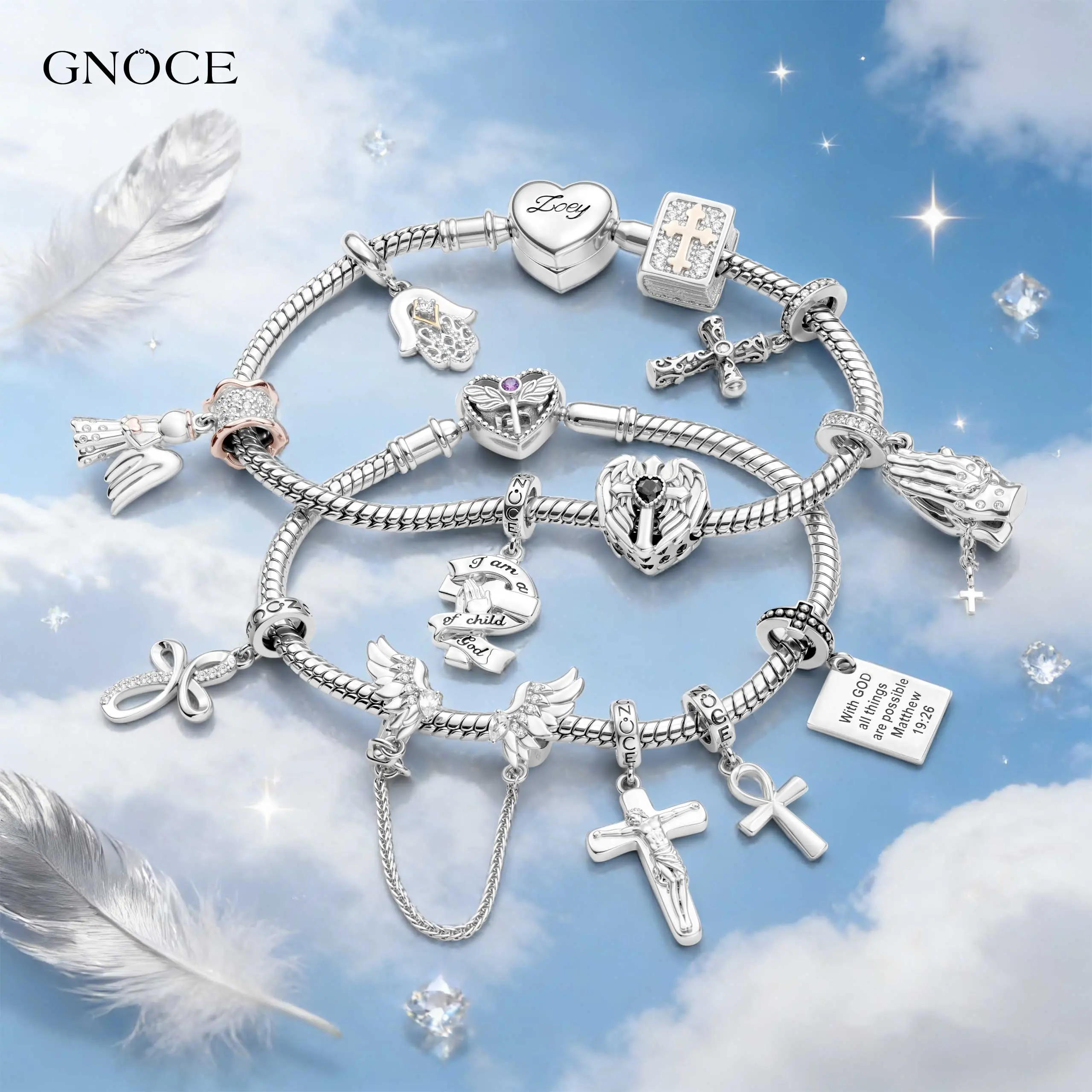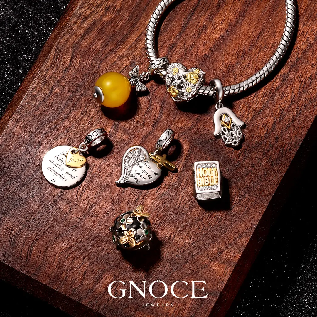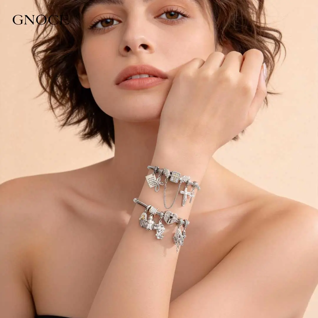 GNOCE Charm Bead for Bracelets - Cubic Zirconia and Enamel, Cross Bible and Tai-Chi Charm Bracelet and Necklace Pendant Charms for Women and Girls, Religion Beads Fit Snake Bracelets and Necklaces