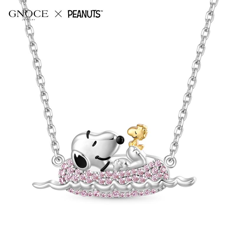 5. Gnoce Peanuts Collab Necklace for Women Snoopy & Woodstock Bubble Bath in Bathtub Necklace for Her, Daughter, Wife, Valentine‘s Day, Mother’s Day Jewelry Gift