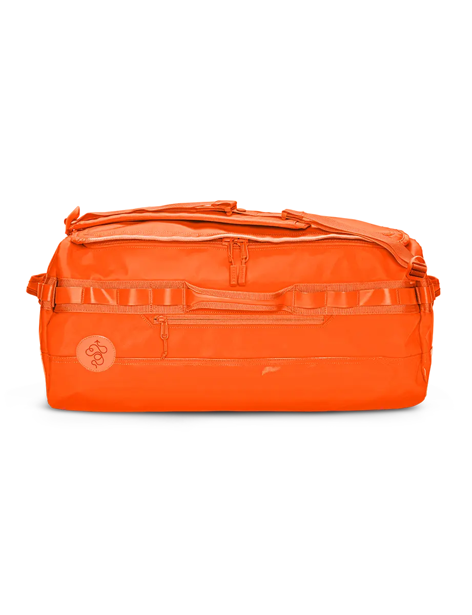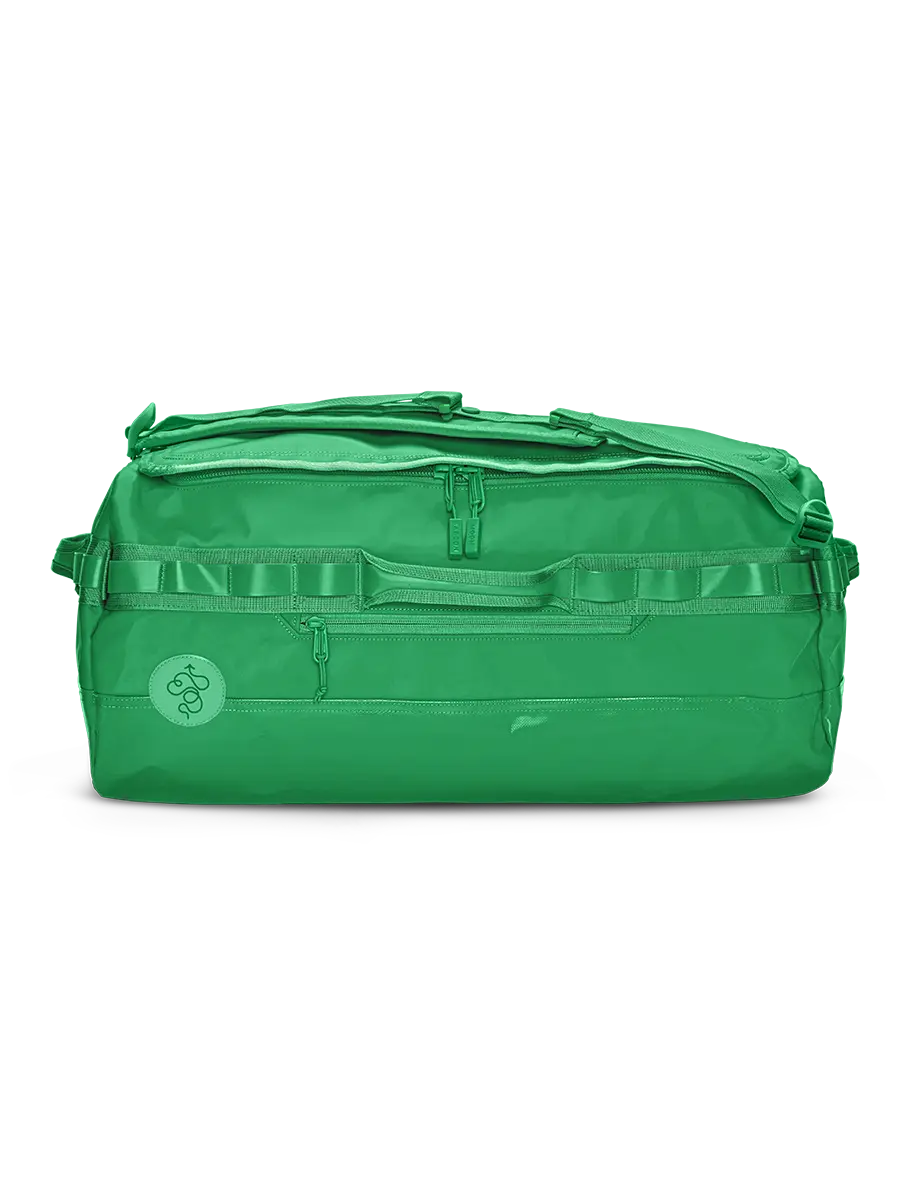 Fits 5+ days worth of clothing and if traveling by way of airplane, acts as TSA checked luggage. Perfect for longer trips and can easily be tossed in the trunk for a road trip, fitting both your and a partner's belongings. This duffle will survive anything you throw at it and should not be treated preciously.