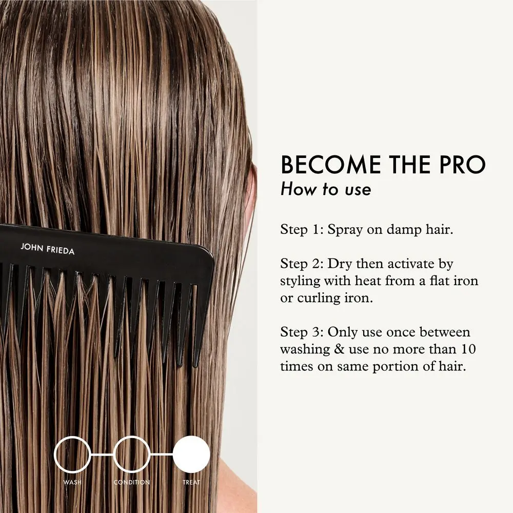 Apply to clean, wet hair once between washings. Blow-dry, then activate with a flat iron or curling iron. Use no more than 10 times between colorings. For best results, pair with John Frieda Go Blonder Lightening Shampoo & Conditioner.