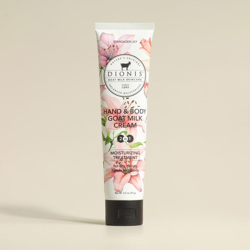 This rich and creamy hand & body goat milk cream is luxurious and powerful enough to help your skin retain moisture and stay hydrated in this amazing stargazer lily fragrance. Well-hydrated skin glows from within, use our goat milk cream to make you look naturally beautiful by keeping your skin soft, smooth, and hydrated - hooray! Best of all, this comes in a travel-friendly 3.3 oz. tube.