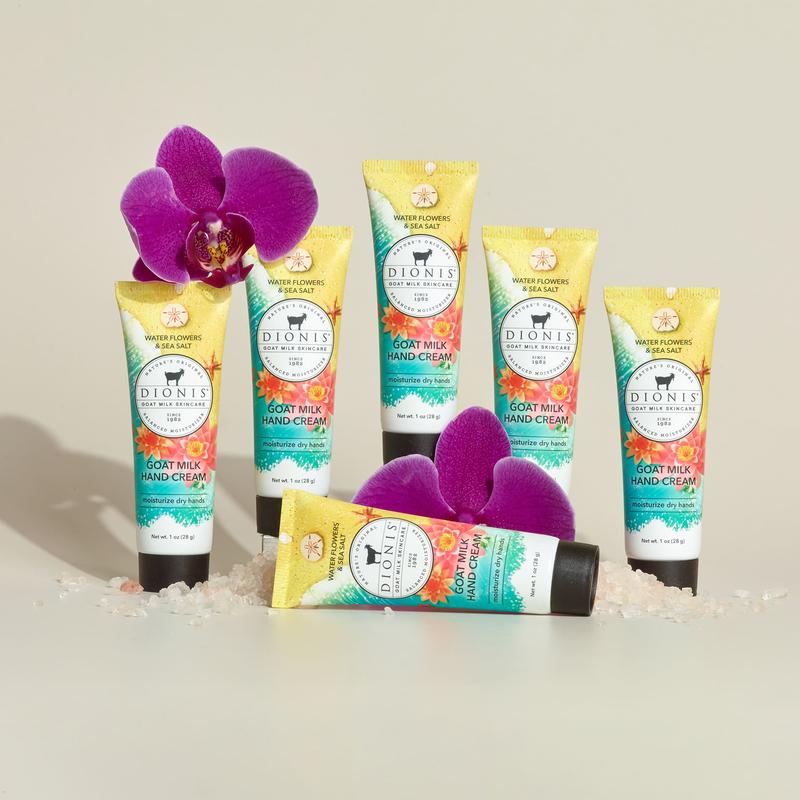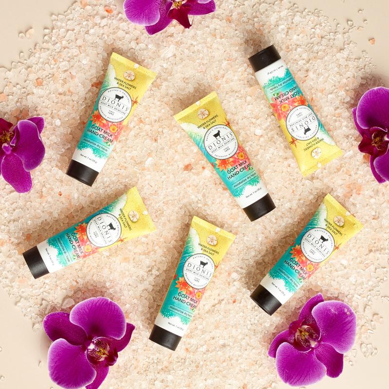 Want to know what all the hype is about? Experience the transformation of your dry skin with this best-selling goat milk hand cream! Our unique formula is rich & creamy with a heart of water lily, lotus, and magnolia dew, complemented by fresh melon, rosewater, and musk, all topped with a kiss of sea salt to hydrate dry skin without leaving a greasy residue. We make this luxurious formula with nourishing goat milk, which is great for sensitive skin. Join the herd and experience the wonders of goat milk.
