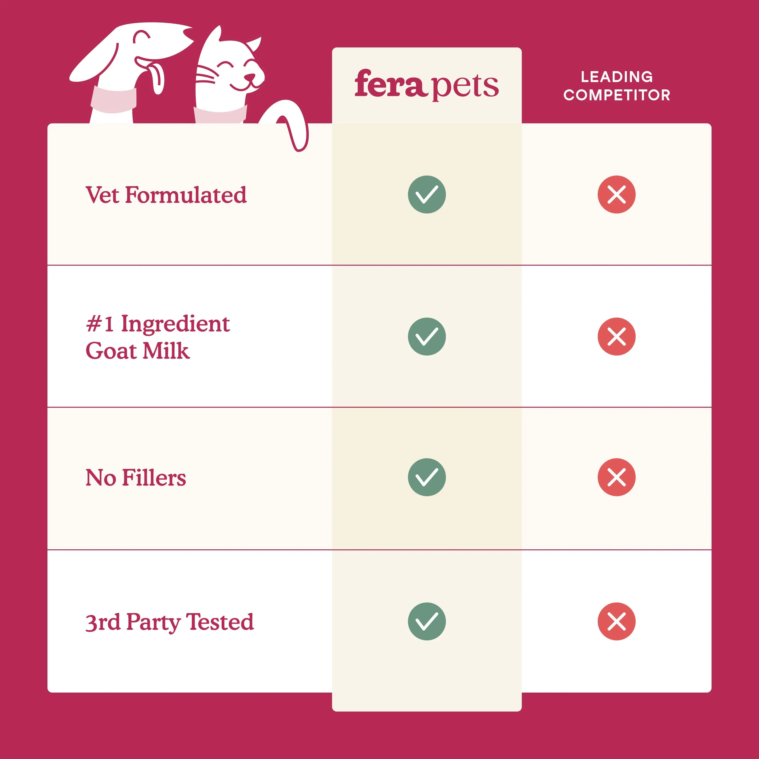 I began using the FERA skin & coat goat milk topper in my cat’s breakfast (with wet food). After only a week I noticed a big difference - their coats are so soft & shiny. I use daily, awesome product.