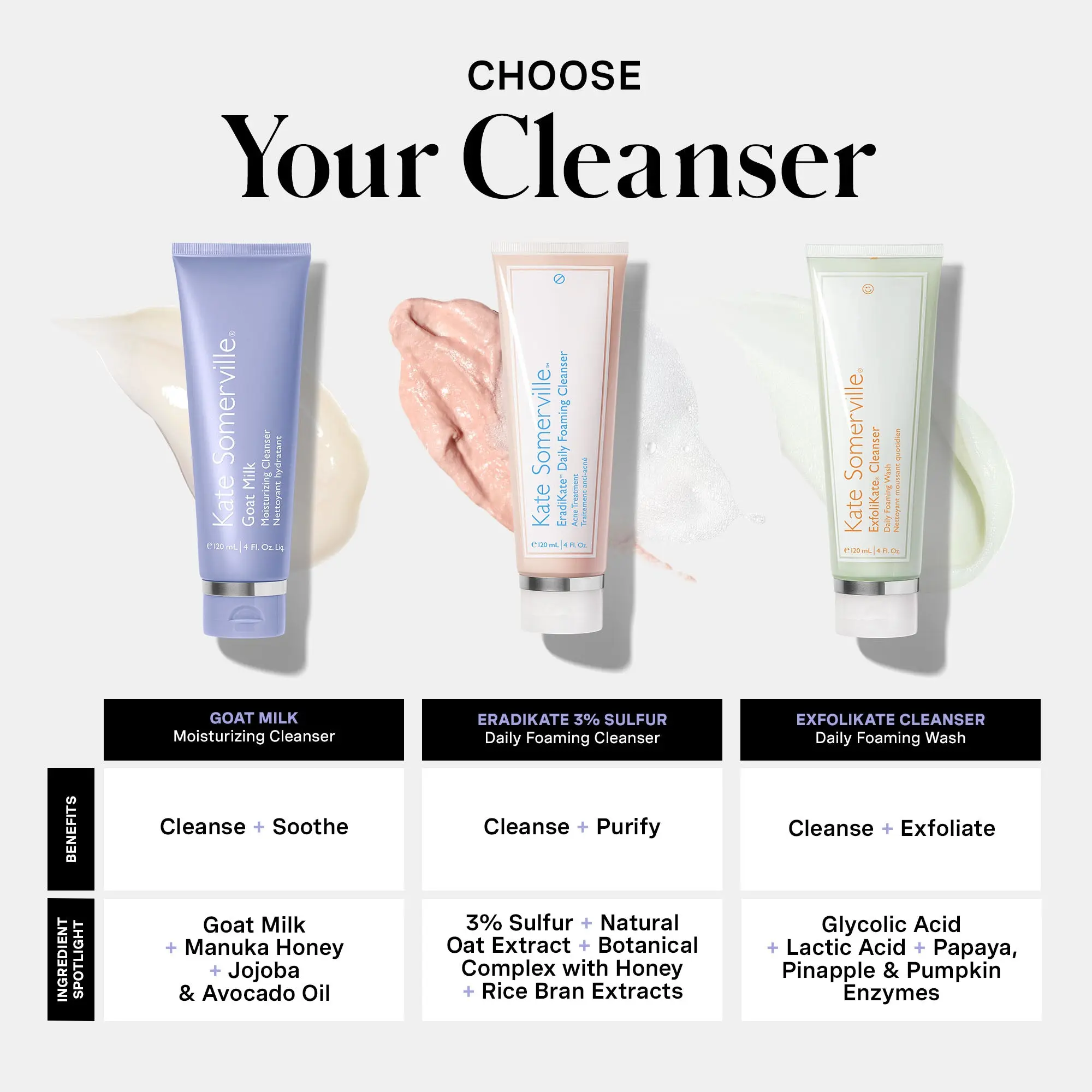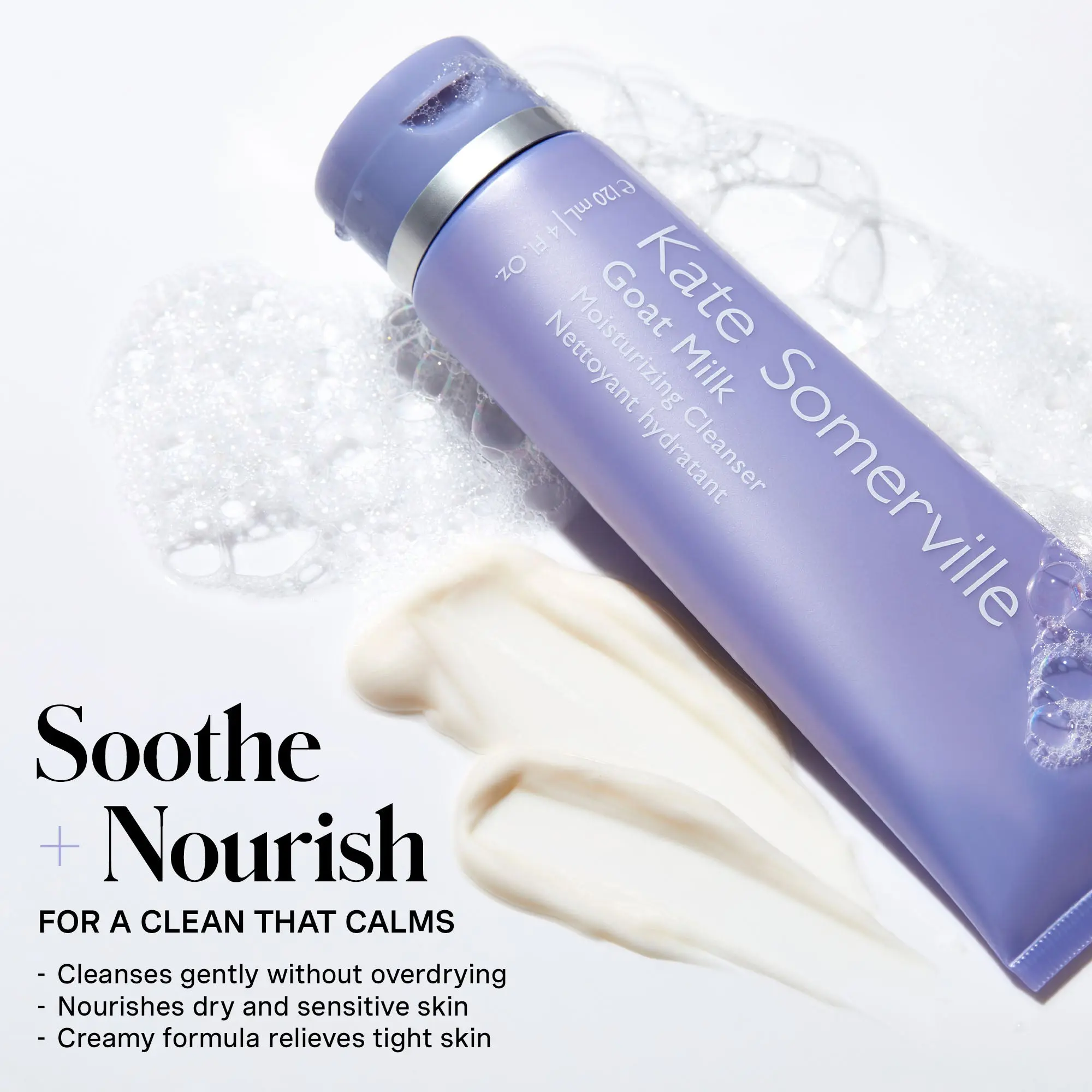 Our Goat Milk Moisturizing Cleanser is formulated to cleanse and soothe without tightness or irritation. The non-foaming + creamy formula removes makeup, dirt, oil and impurities without stripping skin. Sulfate-free and clinically tested safe for sensitive skin, use this nourishing face wash daily to relieve skin tightness and dryness.