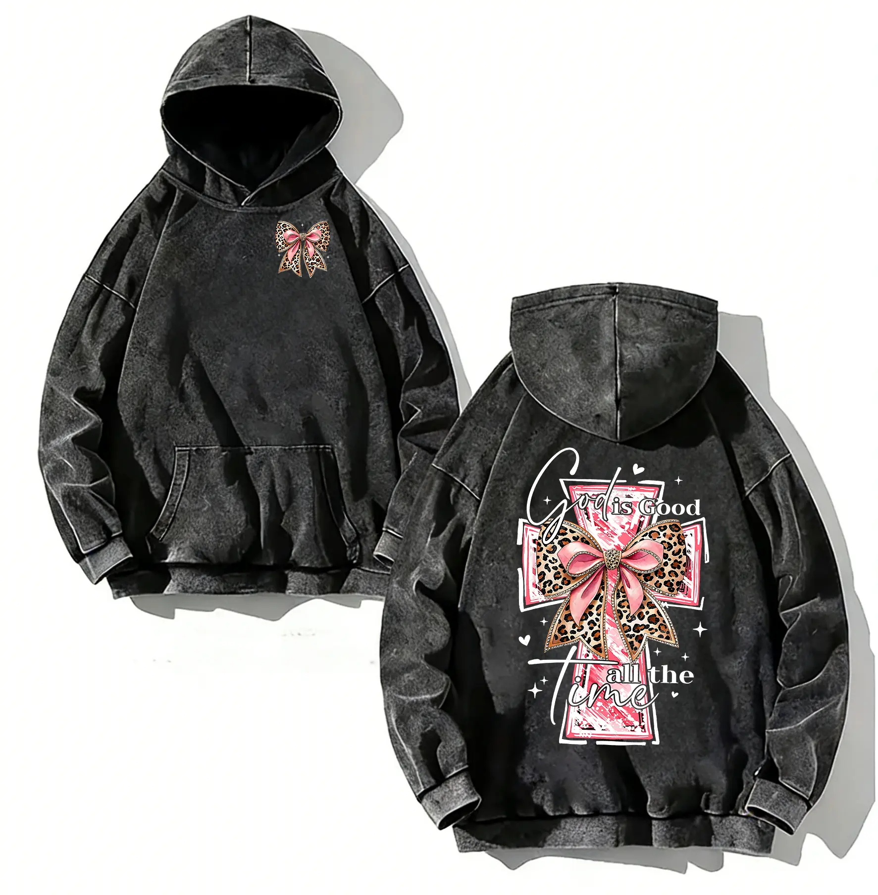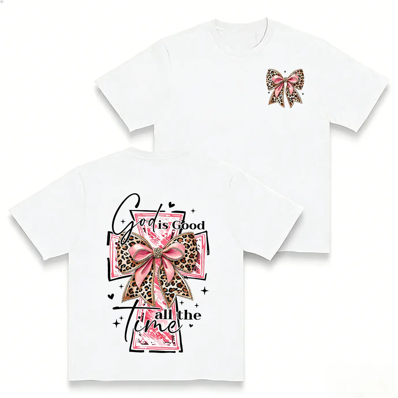 ·Graphic Design: Features a watercolor cross and coquette bow, making it a standout piece. 🎨