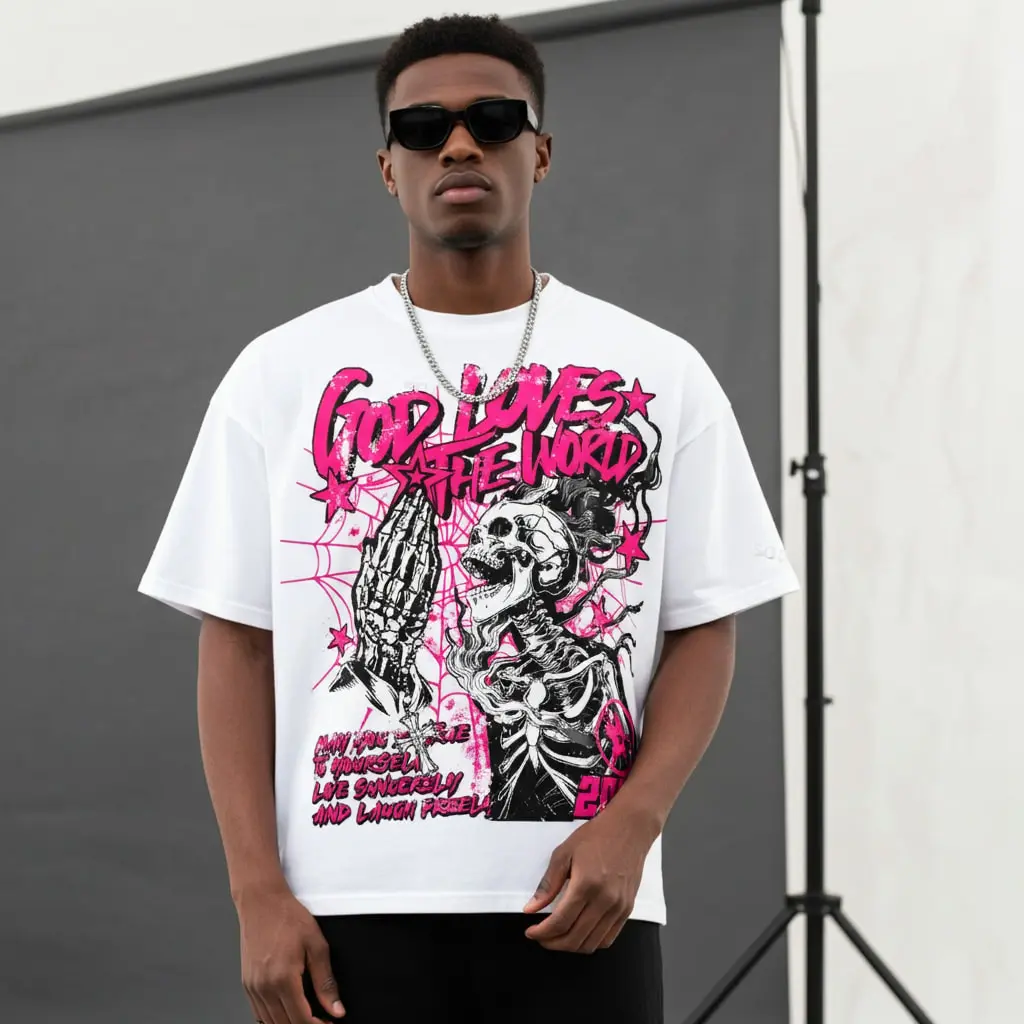 Sopula Studio Men's God Loves The World Graphic Cotton T-Shirt Street Style