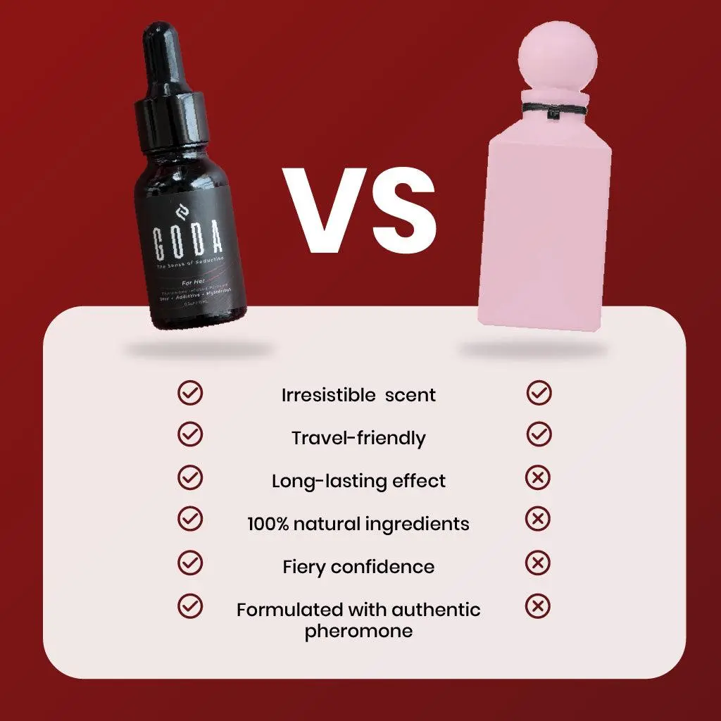 The Goda For Her perfume is a scent magnet, designed to enhance your natural aroma. It lasts up to 12 hours, ensuring he keeps coming back. This 100% vegan & cruelty-free perfume is infused with pheromones, offering a unique blend of floral and amber notes. Perfect for those who appreciate a sweet, fresh aroma with a soft spicy undertone.