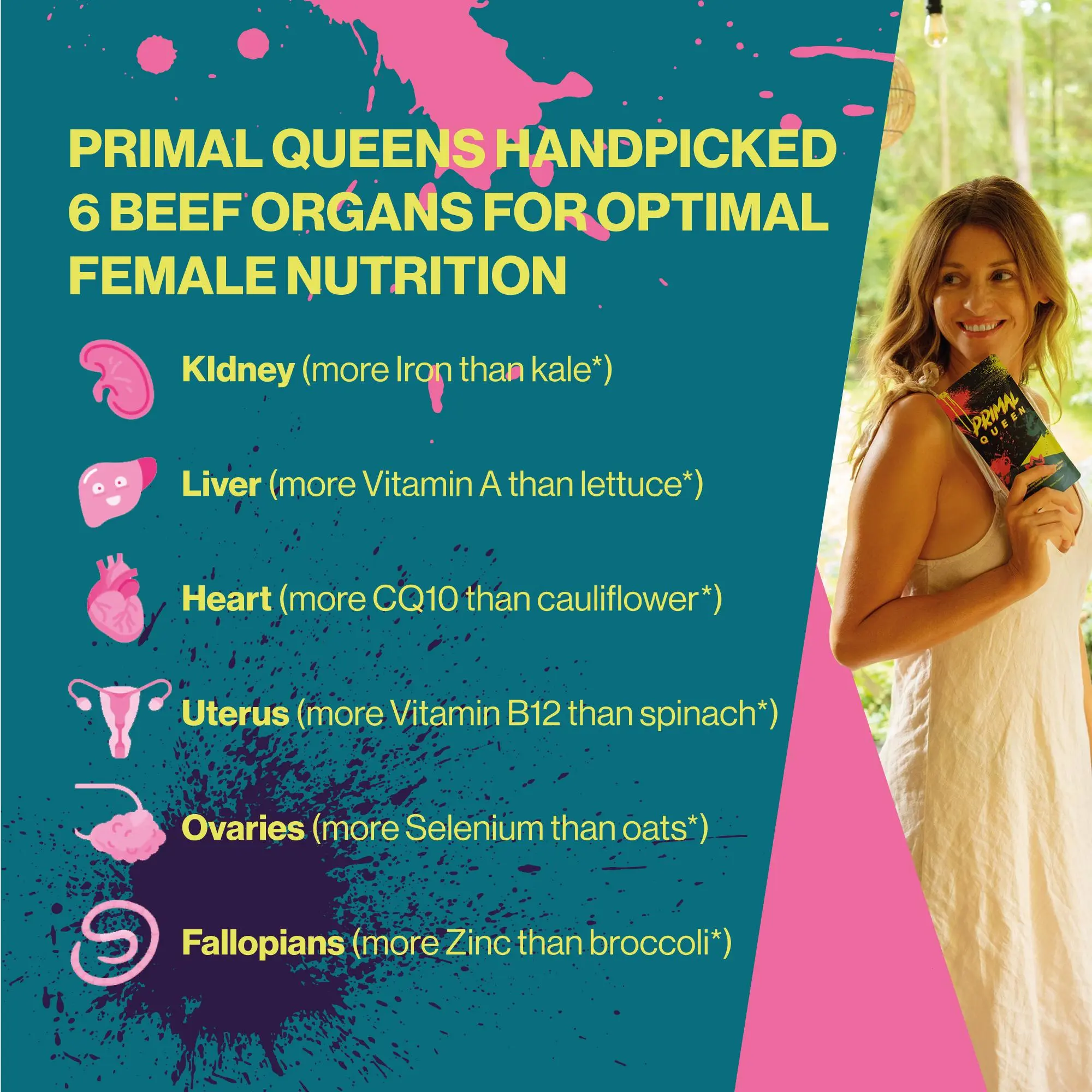 I love my Primal Queen! Started with the beef organs and had so much more energy within just a couple of weeks. I added the creatine after being down in my back 3 separate times over the summer, and it seems to be helping to keep my muscles hydrated.