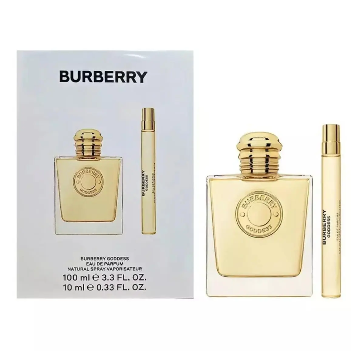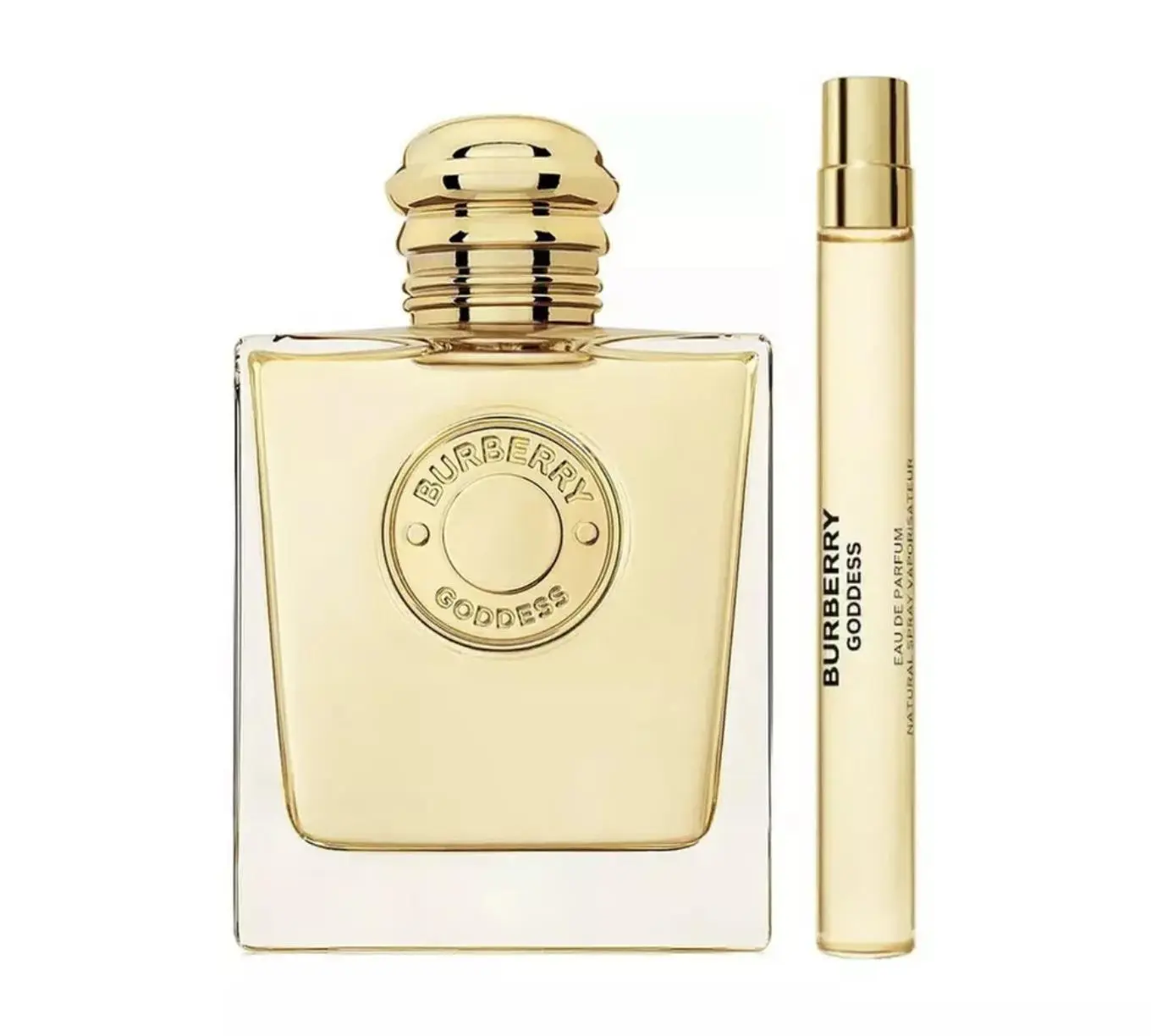 The Standard Goddess features a minimalist square bottle with soft pink tones and a refined gold medallion, combining chic aesthetics with a modern, refillable design. The Intense Goddess comes in a similar elegant design, reflecting Burberry’s dedication to luxury and style. Both are perfect additions to any fragrance collection.