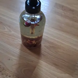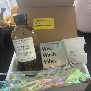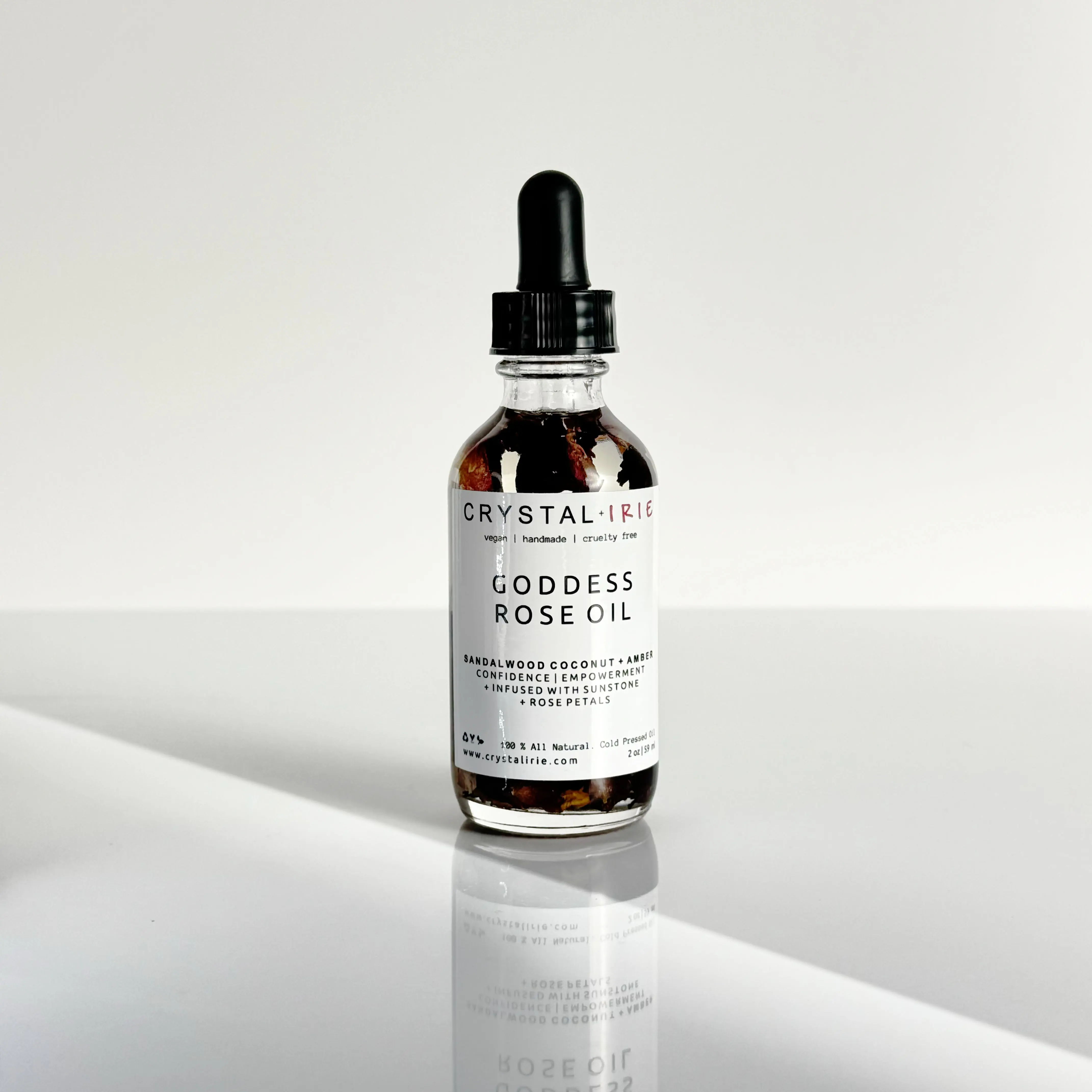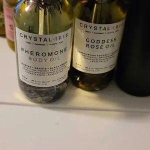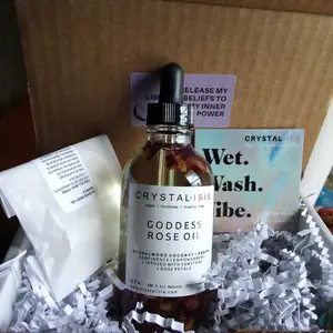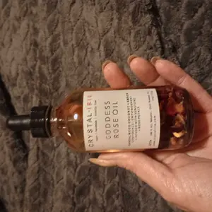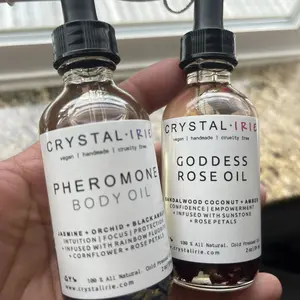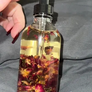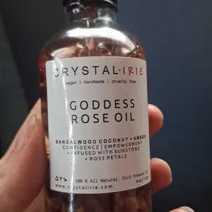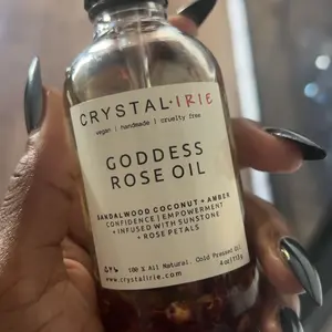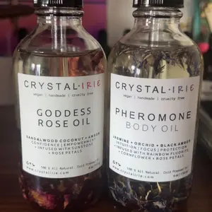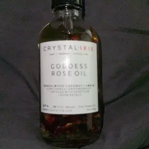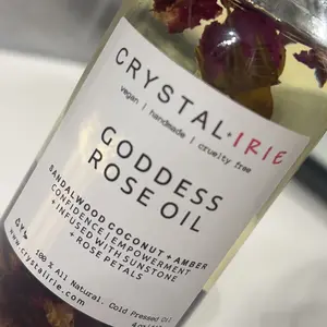 FOR ALL SKIN TYPESย This is a lightweight full body oil is Infused with Organic Rose Petals and Sunstone crystals. Made with Sunflower oil, sweet almond oil, and vitamin E oil. Scented with an aย blend of Sandalwood, Eucalyptus, Coconut, Amber, and notes of Jasmine. This is a dry oil that absorbs into your skin quickly, leaving your skin smooth, hydrated and silky.