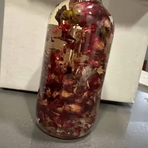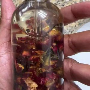 Ingredients: sunflower oil, vitamin e, sweet almond oil, rose petals, sandalwood, eucalyptus, coconut, amber, jasmine