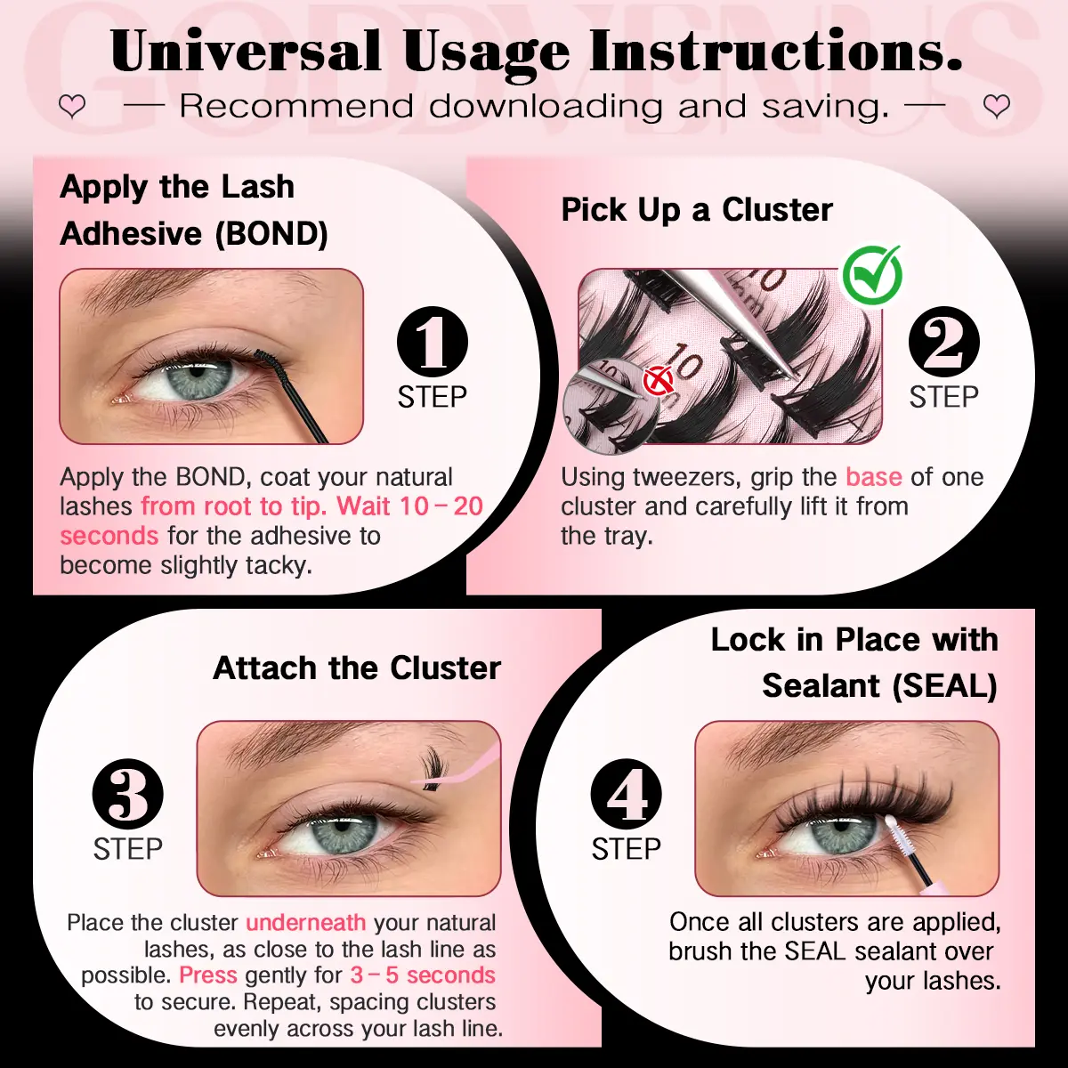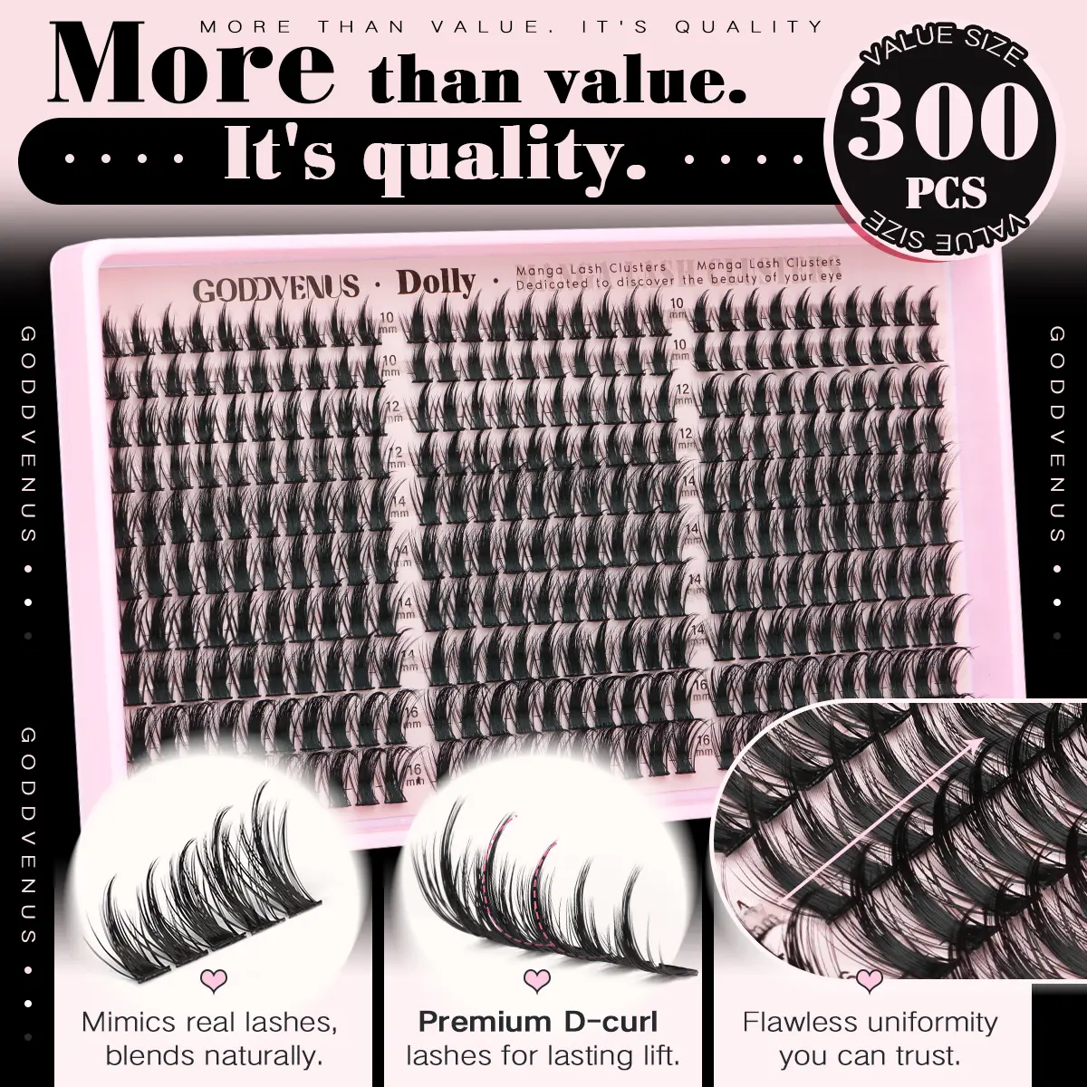 • 300 Pcs Eyelash Clusters= Endless Looks: Mix & match 10mm (inner corner) to 16mm (outer wing) lengths for custom manga eyes. Perfect for beginners & pros!
