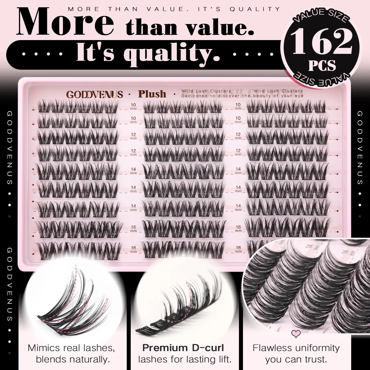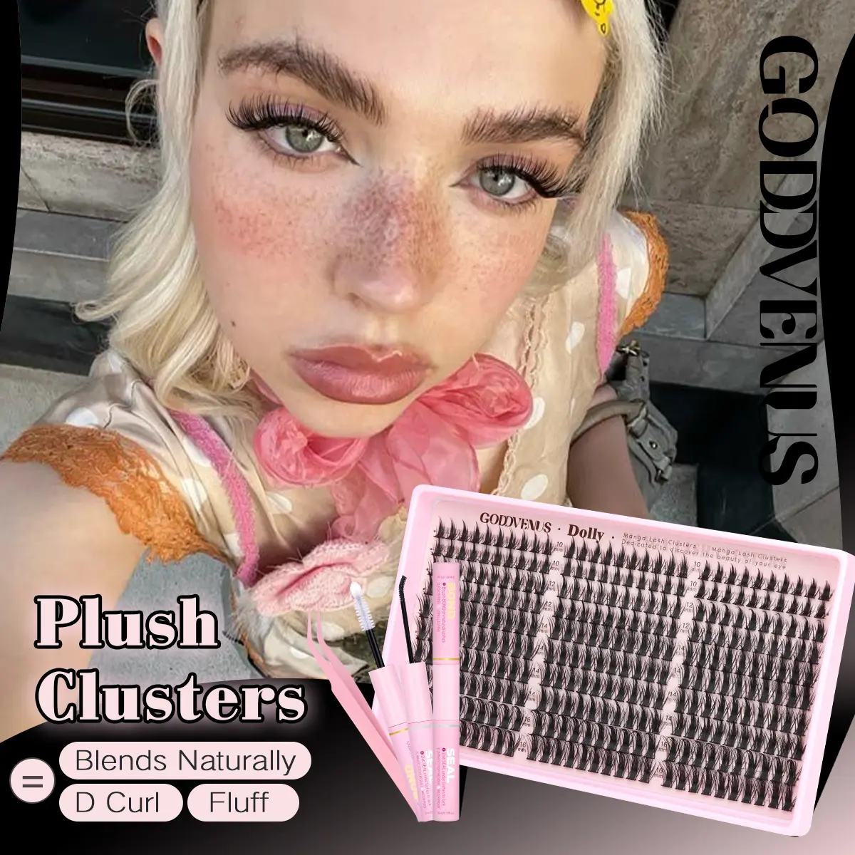 Goddvenus Plush D Curl Spidfer Lash Clusters Natural Blend 10-16mm Fluffy Lightweight Eyelash Extensions for Daily Makeup
