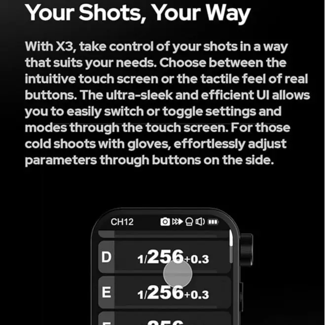 ·Just Swipe and Tap: Navigate with unparalleled ease using the GODOX X3L FLASH TRIGGER's intuitive interface. A simple swipe and tap grant you access to a world of features, including TTL, multiflash mode, HSS, front curtain sync, and rear curtain sync.