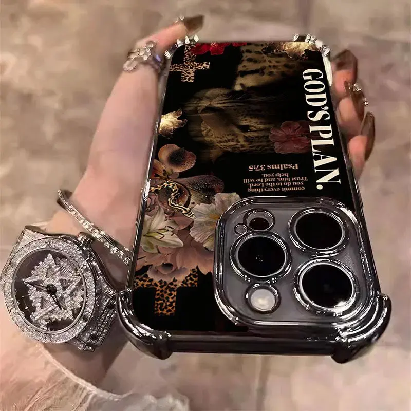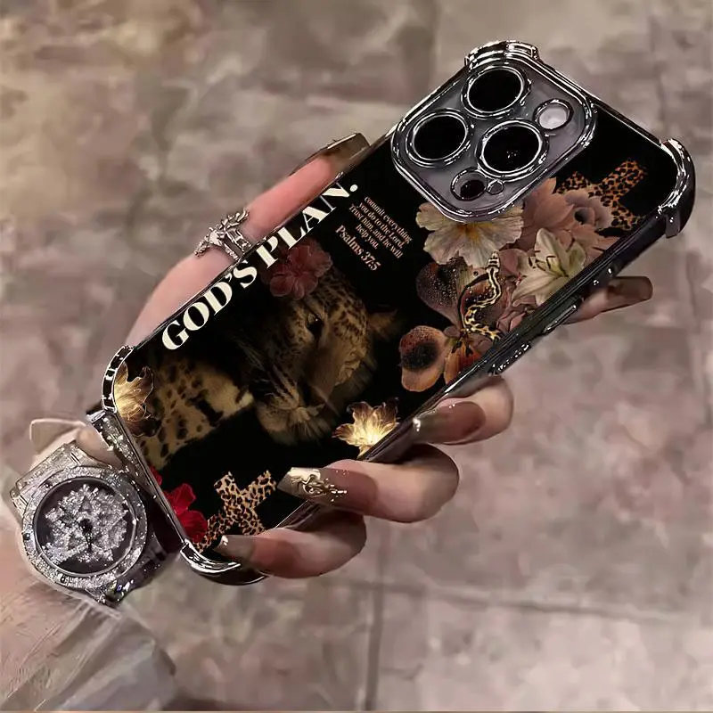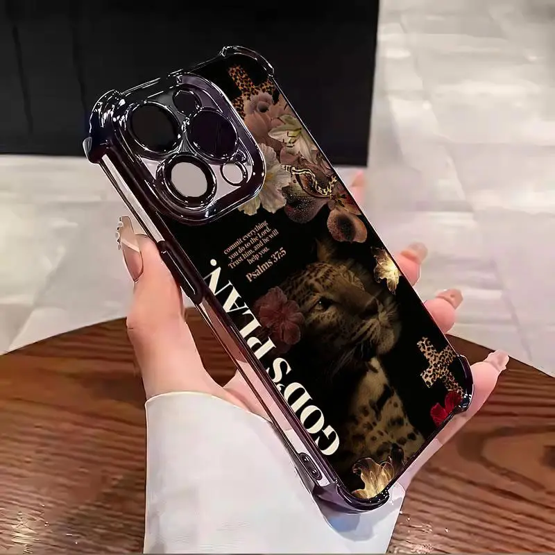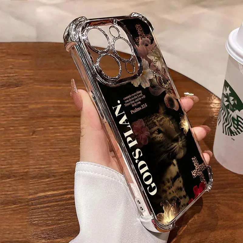 God's Plan Leopard & Psalms 37:5 Bible Verse Phone Case | Four-Corner Cushion Shockproof Cover For iPhone 17 16 15 14 13 12 11 PRO PLUS MAX AIR | Christian Floral Cross Religious Protective Case #IPBW9