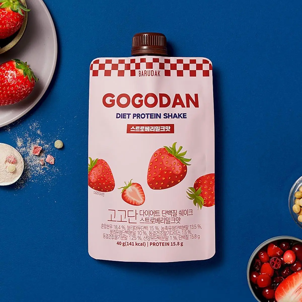 🍓 Craving a delicious and healthy treat? Try GOGODAN's Korean Strawberry Milk Protein Shake! Perfect for a quick meal replacement, just shake with milk or soy milk. 🥛