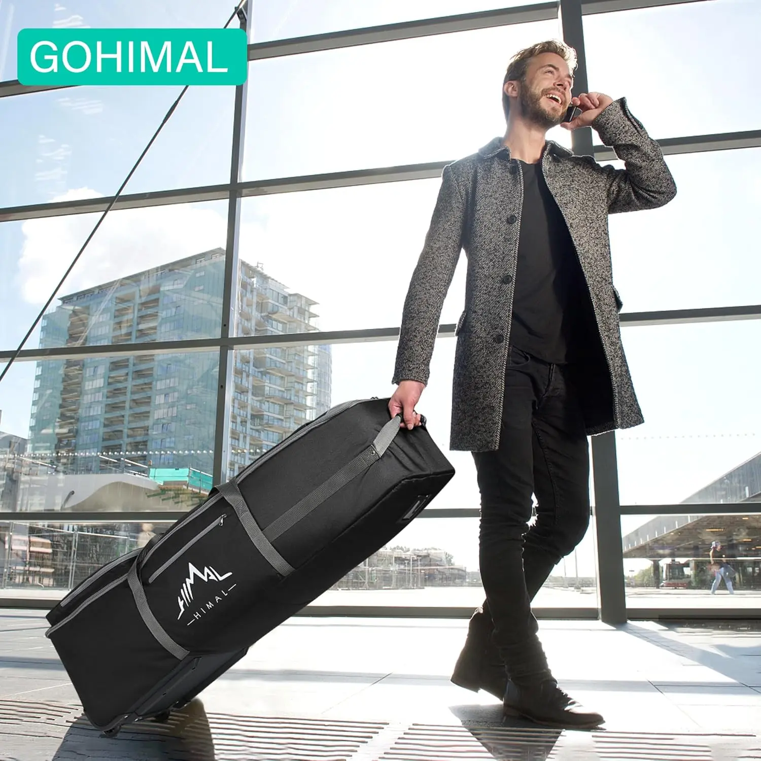 GoHimal Golf Travel Bag with Adjustable Support Rod, 900D Heavy Duty Oxford Fabric Golf Travel Case for Airlines with WheelsGoHimal Golf Travel Bag with Adjustable Support Rod, 900D Heavy Duty Oxford Fabric Golf Travel Case for Airlines with Wheels