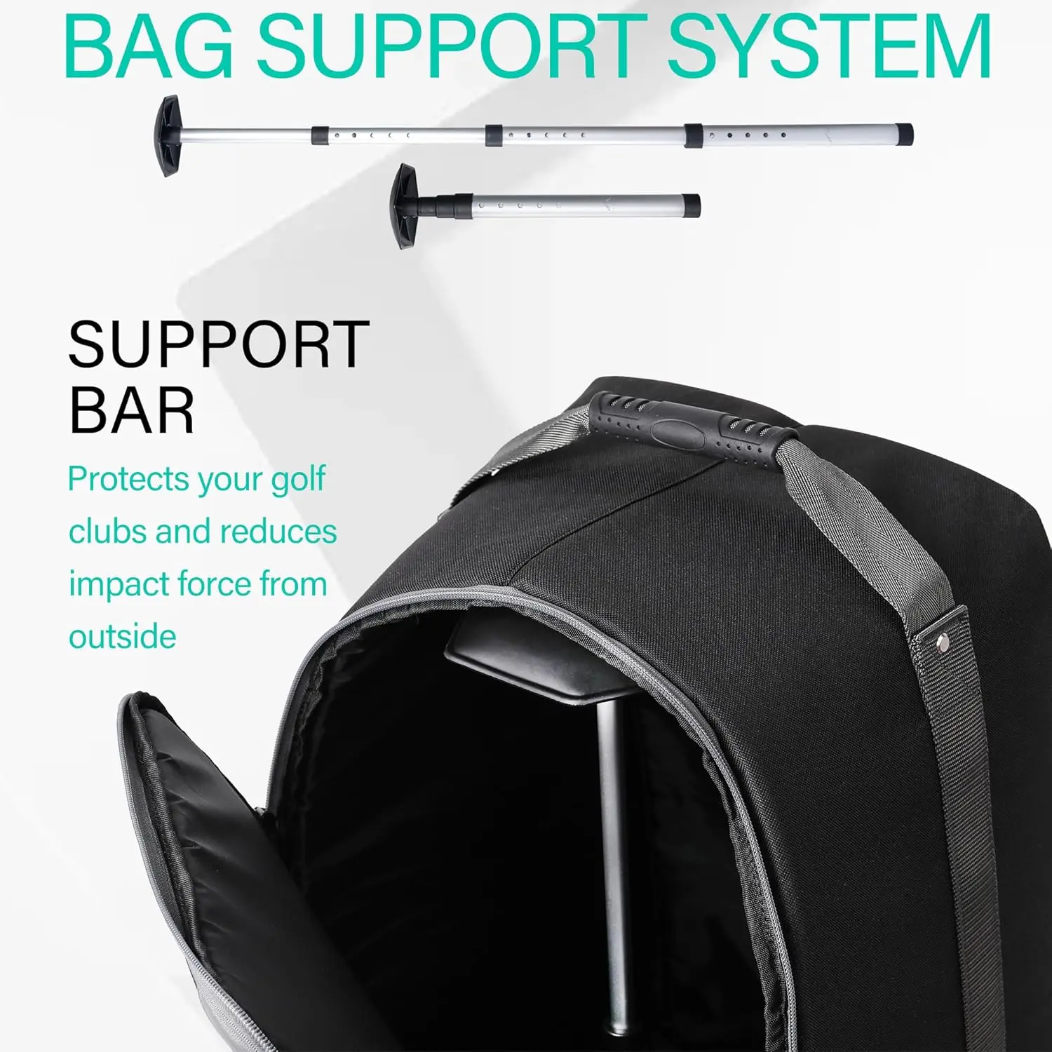 【PERFECT SIZE】: Golf travel case universal size 48.8 x 13.7 x 13.4 inches fits all most set golf clubs. The length of support rod can extend to 51 inches and collapses to 20 inches