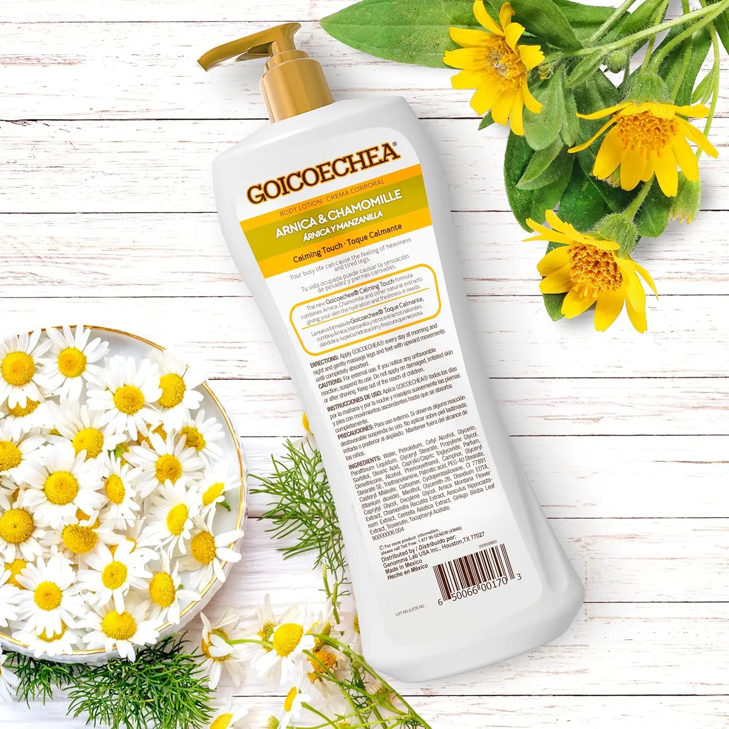 Experience the soothing benefits of Goicoechea Calming Touch Body Lotion, a moisturizing skin care solution enriched with Arnica & Chamomile.