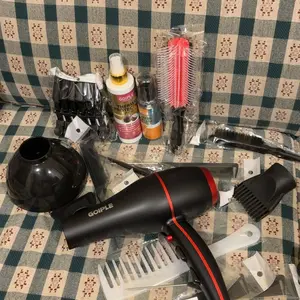This cane with so many goodies! The blow dryer has good settings and gets really hot!