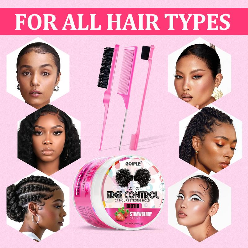 5. Edge Control Biotin Strawberry Scent 24 Hours Strong Hold Haircare Gel with Sleek Modern Design and Minimalist Aesthetic
