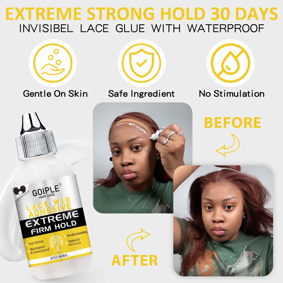·【Waterproof And Oil Resistant】This lace glue is super waterproof for oily or sweaty scalps. When you sweat a lot during sports or when your face is oily and sweaty because of hot weather, it provides reliable adhesion so you can do what you want to do with more confidence.