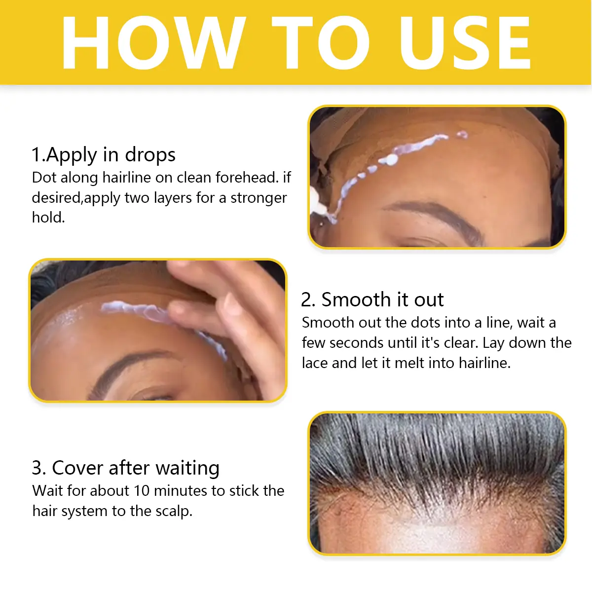 ·【Quick Dry】 Our hair glue for lace wigs is transparent, the drying time is fast, saving a lot of time, the steps are simple and easy to operate, suitable for beginners.