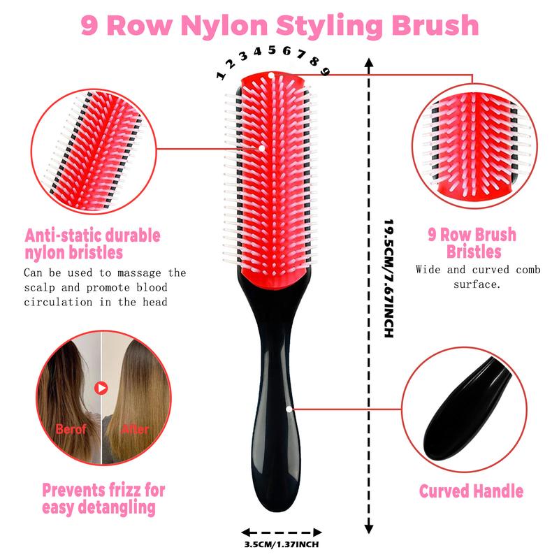 ·【9-Row Styling Nylon Bristle Brush】Anti-static design brush for curly hair for styling, shattering and blow drying. Nylon bristles are made of soft, rounded, heat-resistant nylon threads, making hair softer and denser. The curly hair brush hair can easily slide through the tangles without pain.