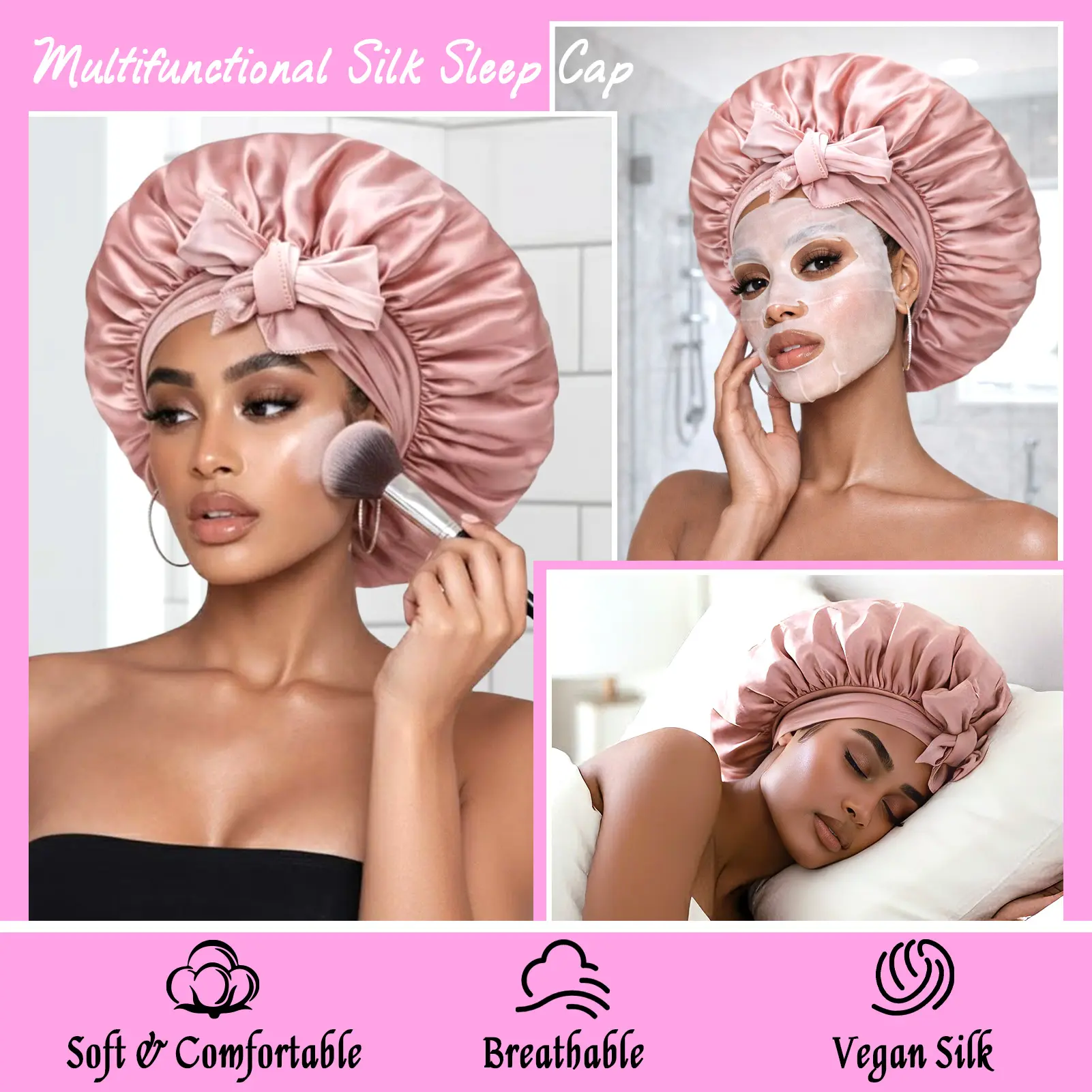 ·【Multifunctional Satin Bonnet】Not only can it be used as a hair bonnet when you sleep, but it can also be used to prepare for bedtime tasks such as washing your face, brushing your teeth, taking a shower and applying a face mask, or to hold your hair in place while you do housework.