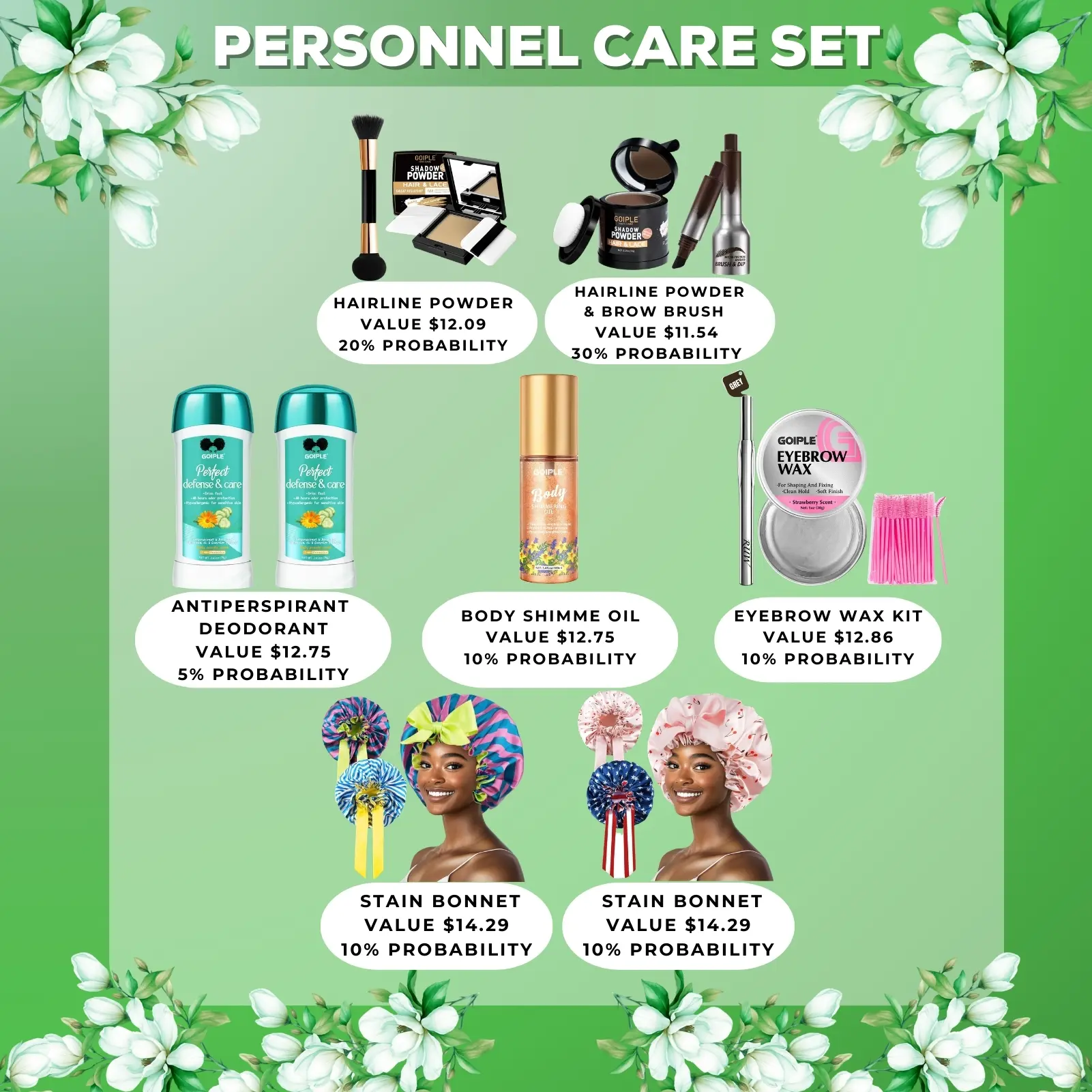 ·Antiperspirant Deodorant: 2pcs 2.65oz antiperspirant deodorant (5% probability)
