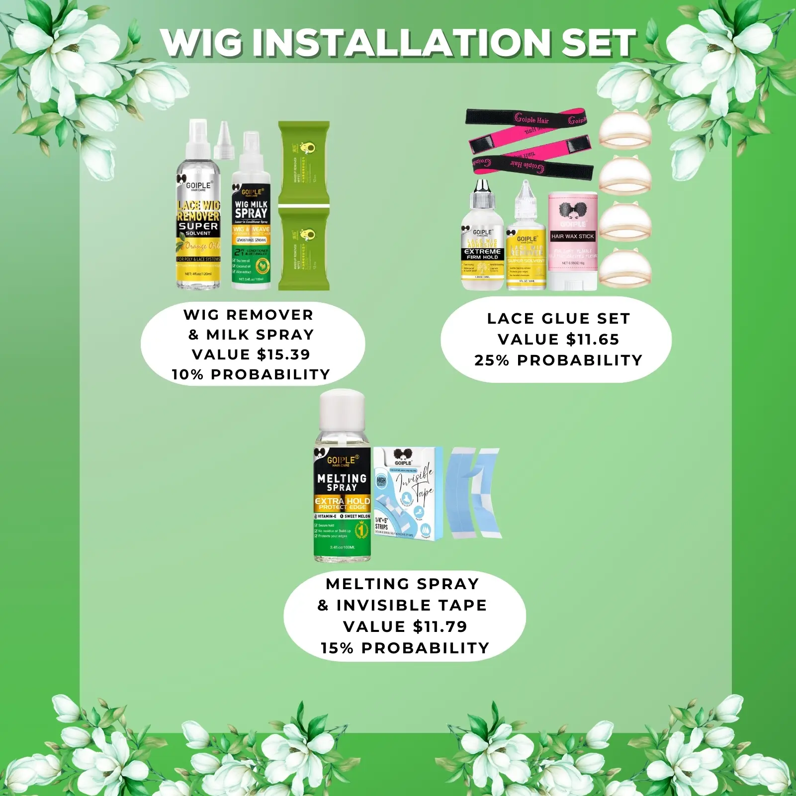 ·Melting Spray & Invisible Tape: 120ml melting spray + invisible wig tape (15% probability)