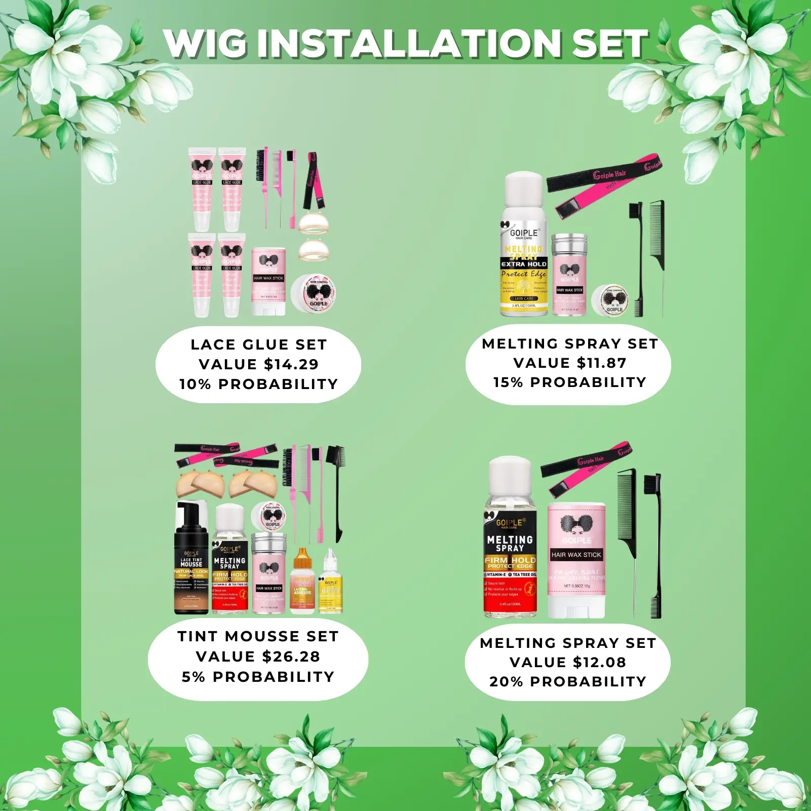 ·Melting Spray & Invisible Tape: 120ml melting spray + invisible wig tape (15% probability)
