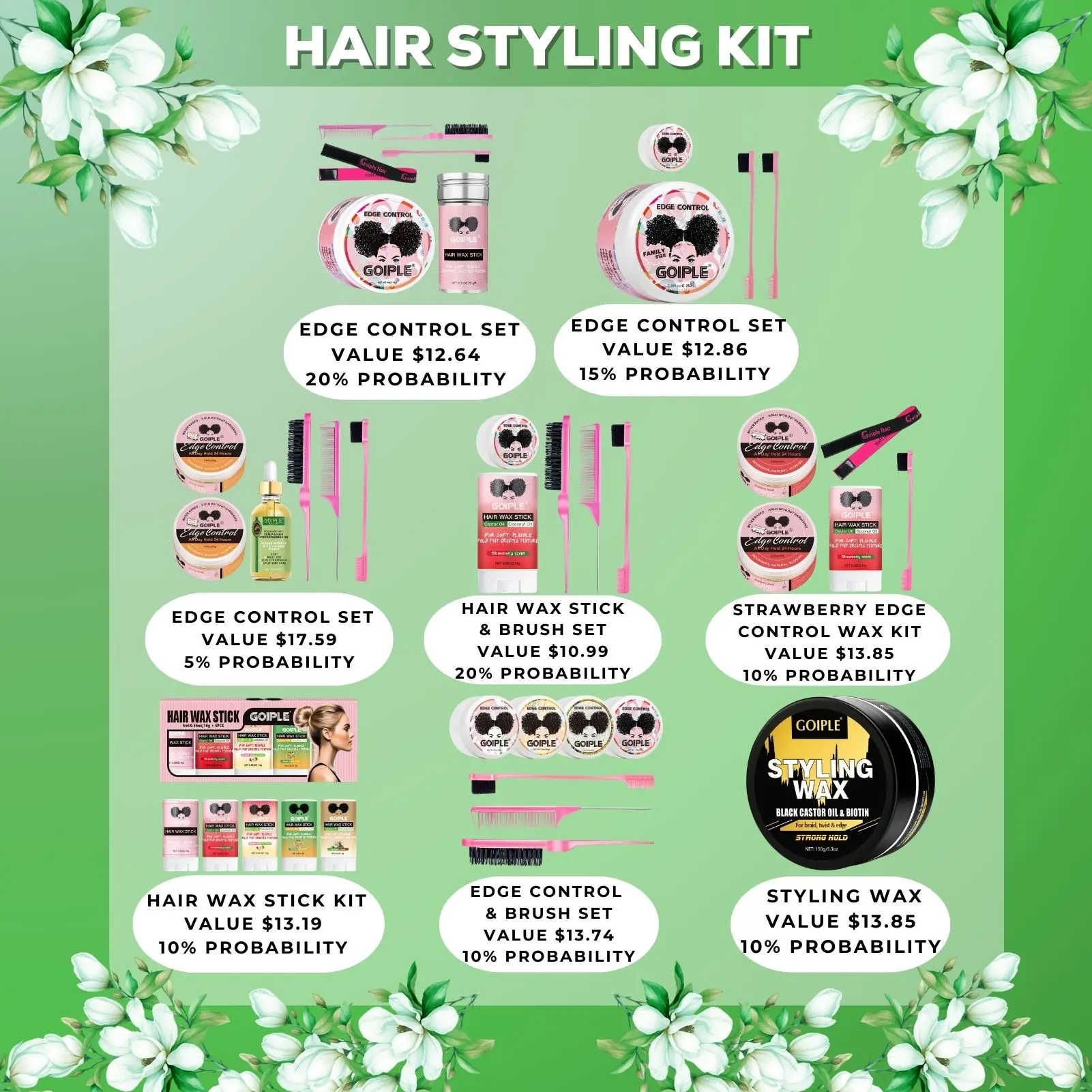 ·Edge Control Set & Brush Set: 4pcs 113g edge control + edge brush*3 + hair clips (10% probability)