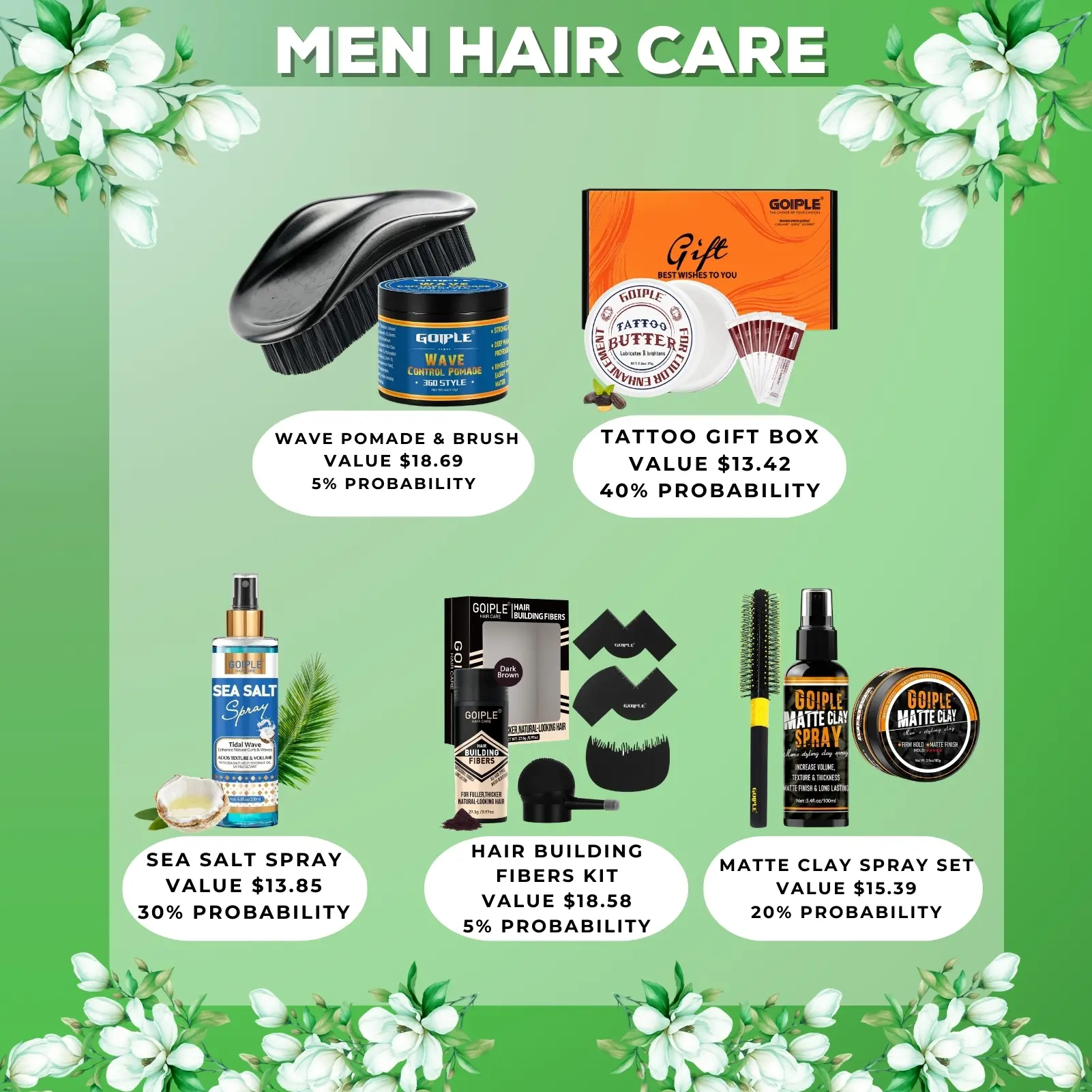 ·Wave Pomade & Brush: 120ml wave control pomade + wave brush (5% probability)