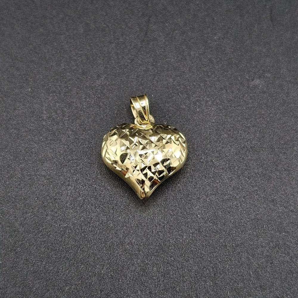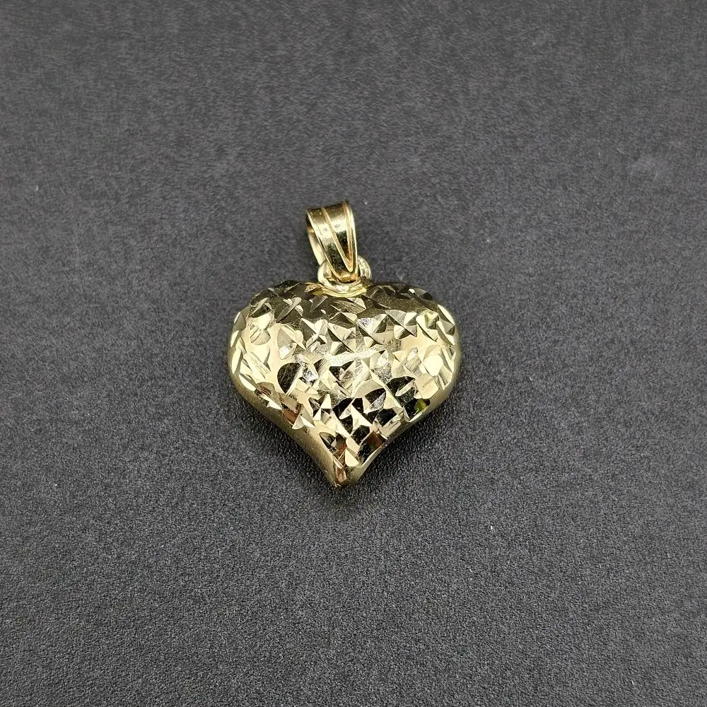 Gold 14k Casual Nugget Heart Pendant for Everyday Wear Jewelry Style and Elegance with Intricate Design