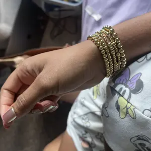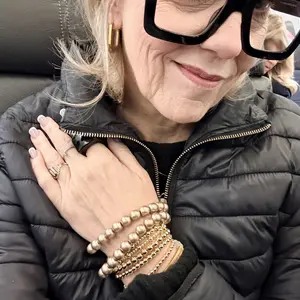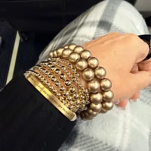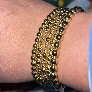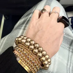 These bead bracelets look awesome! The gold color is perfect, not at all brassy. I love that they stretch over your hand so no claps to deal with. Looks very high end. So bougie on a budget type look.