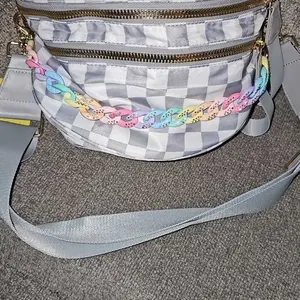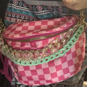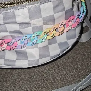 So happy that I decided to add the past Chain to my new checkered bum bag! 🩵🩵🩵