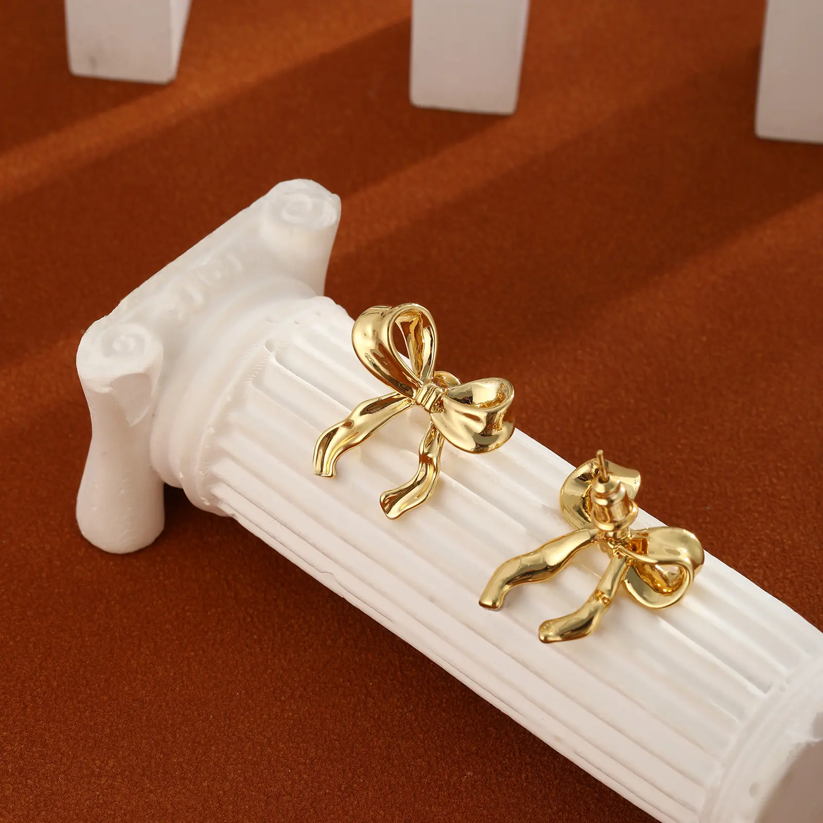 Celebrate your love and style with these beautiful gold bow earrings, perfect for any occasion.