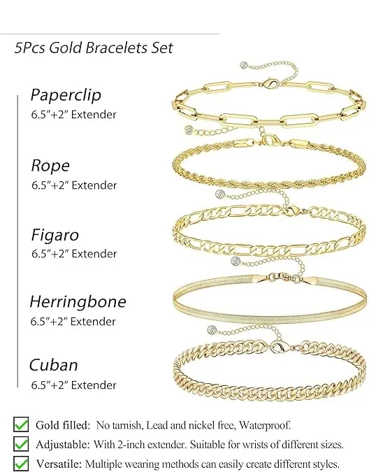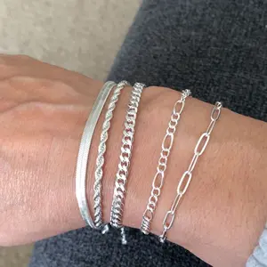 ✨ Stylish Silver Bracelets Set: This collection includes Figaro, Cuban link, Herringbone, Paperclip, and Rope bracelets. Perfect for layering or solo wear, these bracelets add a touch of elegance to any outfit. Each piece is designed for versatility and fashion-forward women.