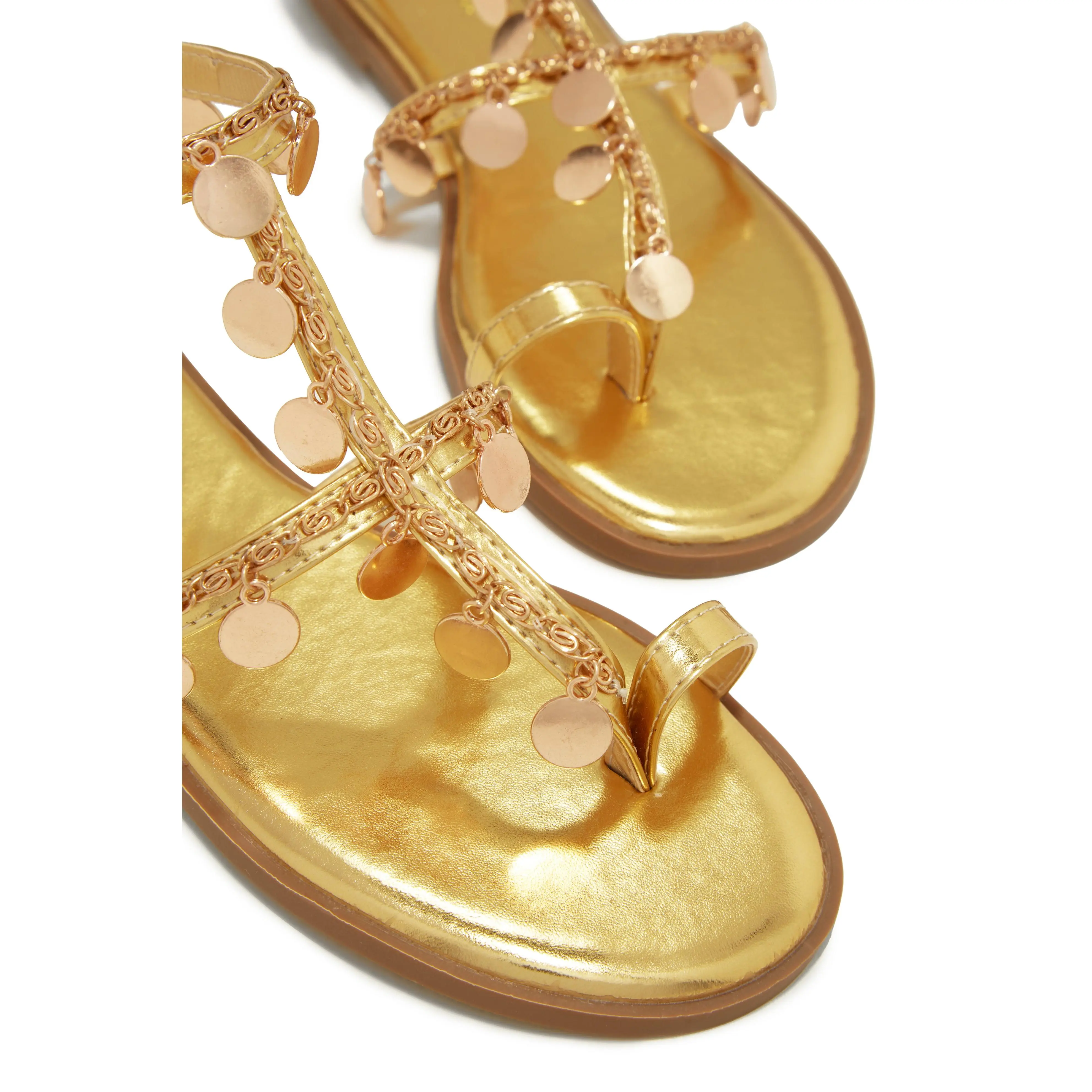 Absolute Paradise - Gold will be the ultimate addition to your wardrobe. These sandals feature a gold tone finish, perfect for any vacation look, and a stylish chain pendant. Enjoy the comfort, style, and quality of these sandals.