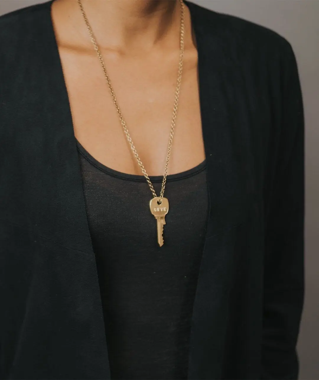 ·Chain features a matching logo tag and a hand-stamped key measuring 1" x 2.25"