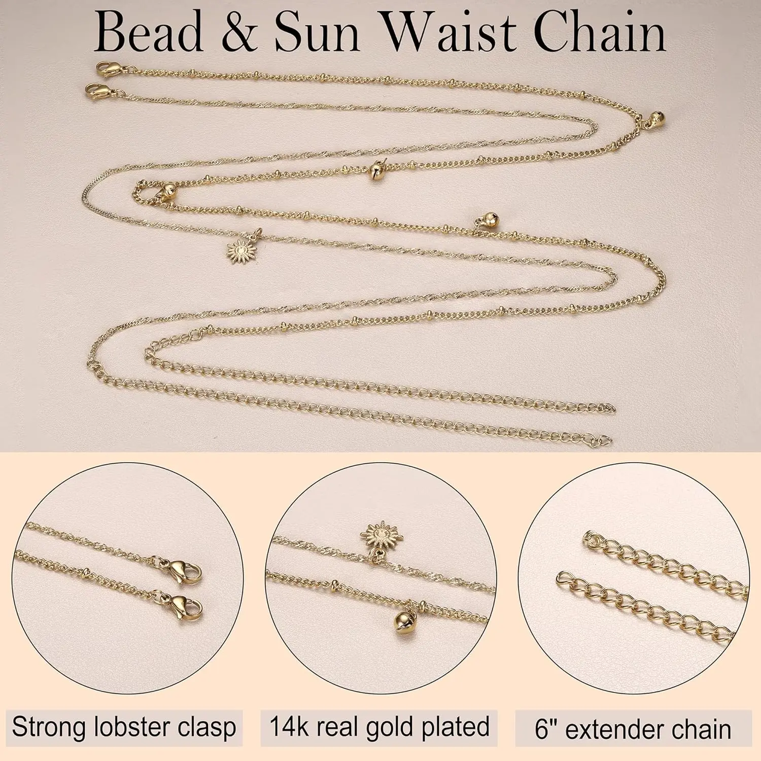 Sexy Belly Chains Rust Free: Crafted from stainless steel, these waist chains are nickel-free, lead-free, and hypoallergenic, ideal for sensitive skin. Plated with 14k real gold for a luxurious look that is waterproof and tarnish-resistant.