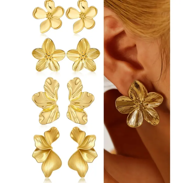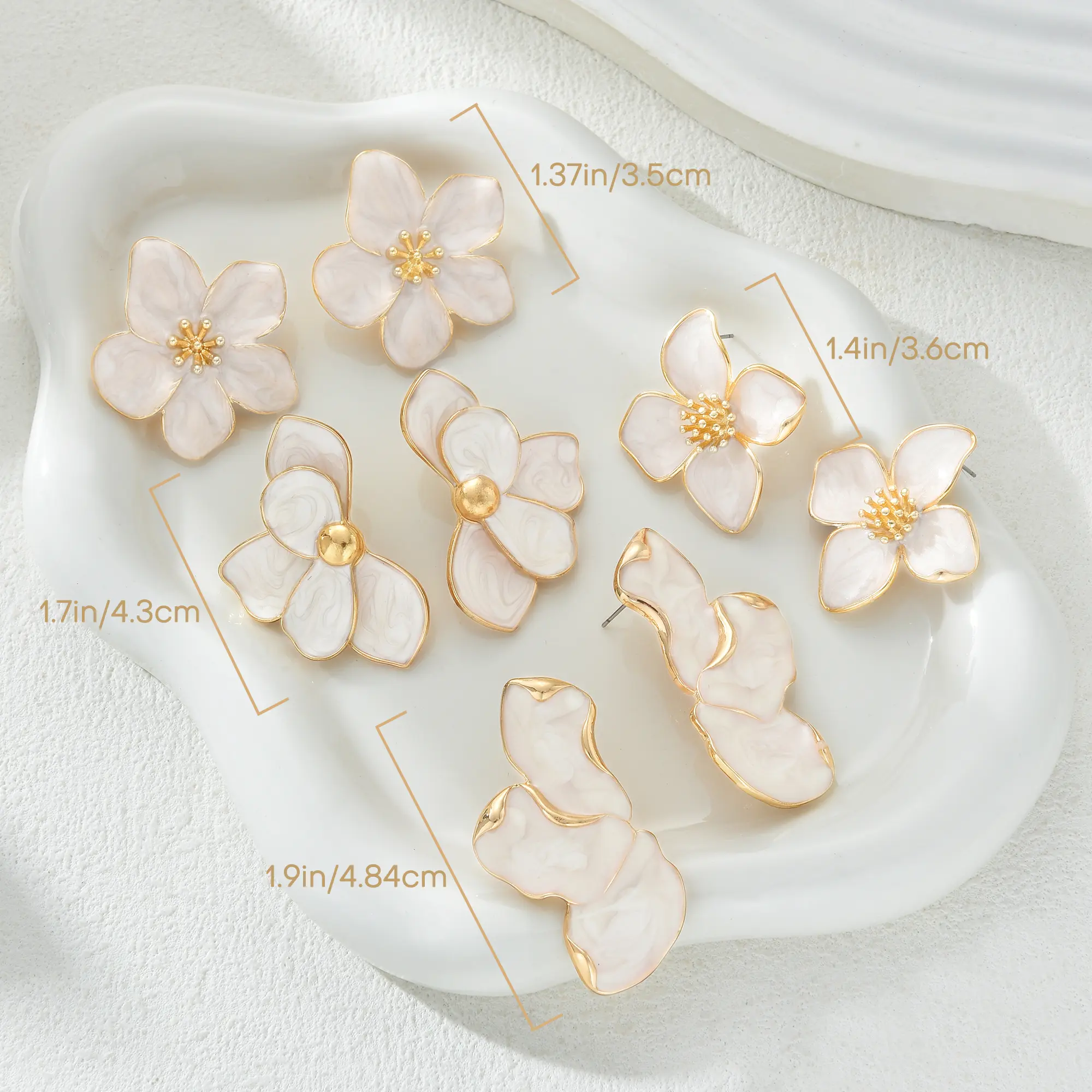 ✨ 17KM 8 Pcs Gold Flower Dangle Earrings for Women ✨