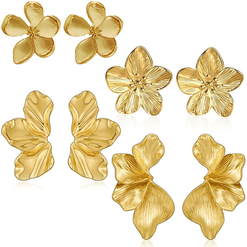 These chunky gold-plated earrings feature irregular leaf floral designs. They offer a statement look with 3D three-dimensional shapes and exquisite petal details. Comfortable and burden-free wear, they weigh only about 0.1 ounces (2.83 grams). Perfect for any occasion.High-quality Alloy Material + Color-Retention Plating and floral design add elegance