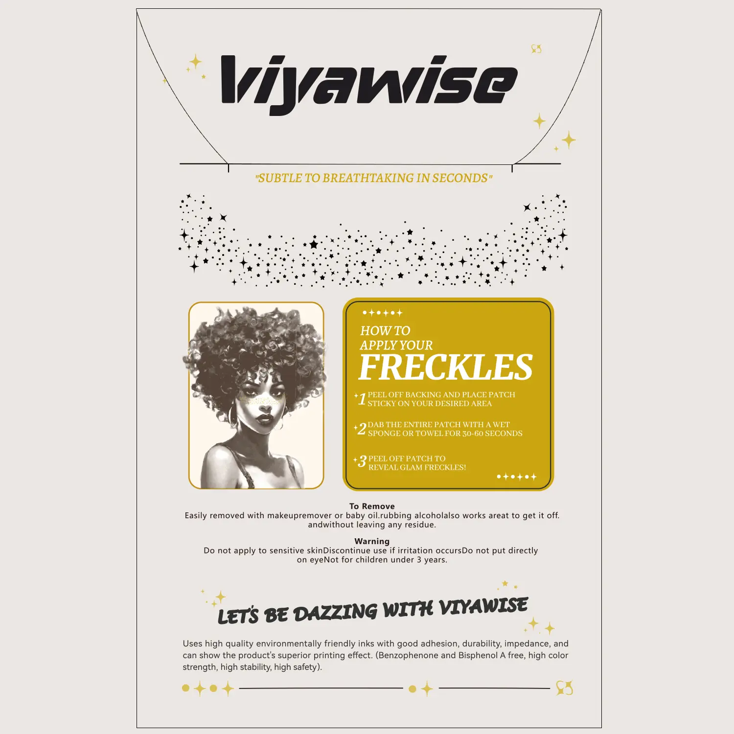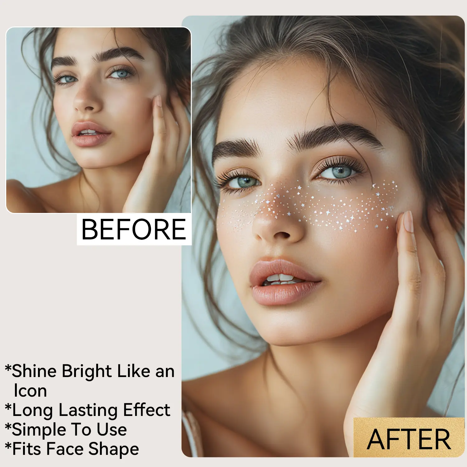 ·LONG-LASTING EFFECT - With our makeup glitter speckle patches, you can up your beauty game and look flawless from dawn to dusk. These cosmetic glitter patches blend perfectly with your skin, maintaining your speckled appearance all day. Our glitter face patches give you the power to look gorgeous and radiant for hours on end, whether attending a party or another event. You can rely on our speckle patches to deliver gorgeous fairy makeup every time.